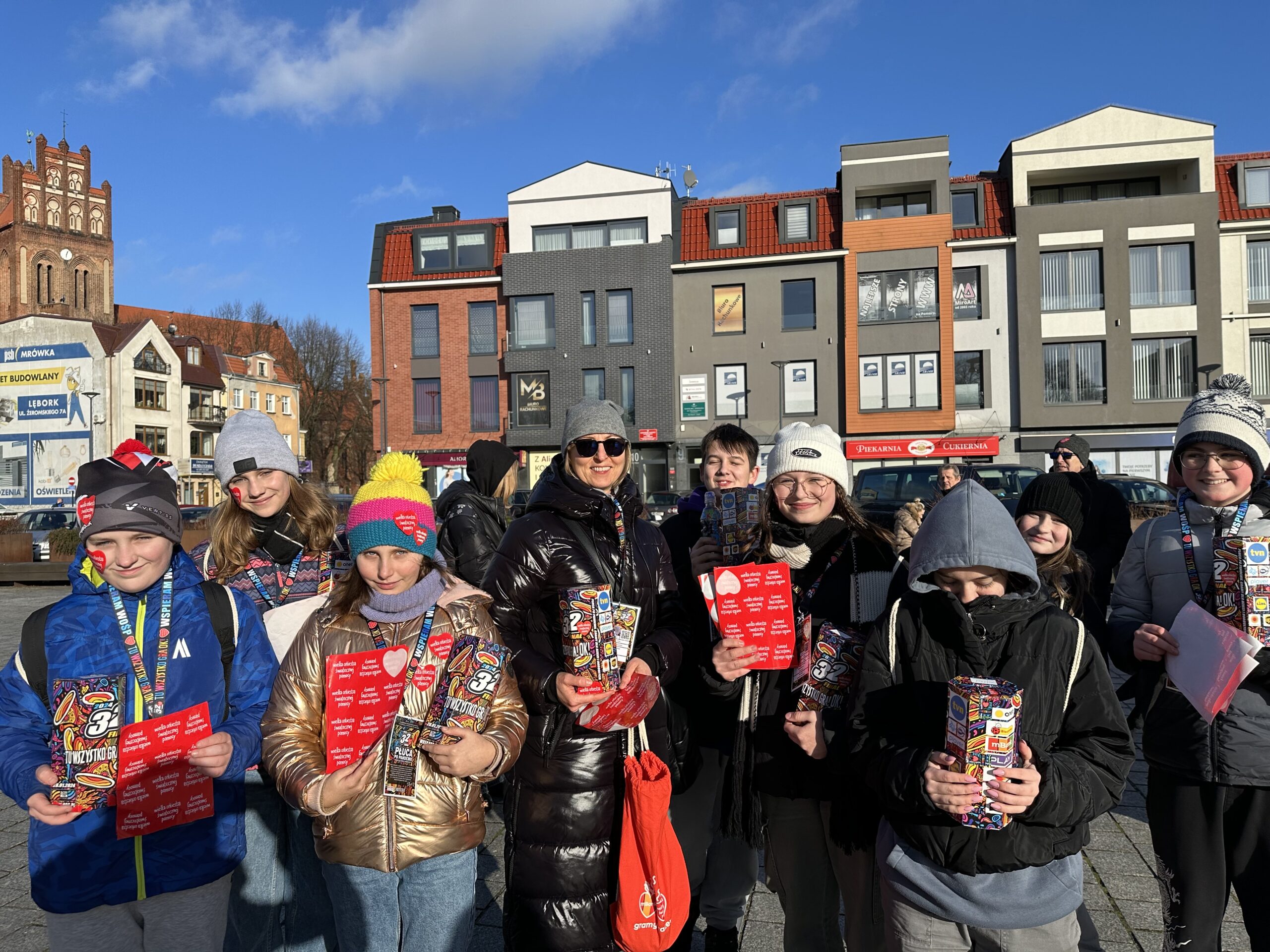 W dniu 32 Finału WOŚP, tj.28 stycznia 2024 roku, 12 uczniów z naszej szkoły uczestniczyło w zbiórce pieniędzy na ulicach miasta Lęborka do 10 puszek indywidualnych WOŚP. Byli to: Martyna Tolas (kl.8a), Iga Pujsza, Lidia Goitowska, Maja Studniarz (kl. 7a), Jan Bizewski, Kalina Gołębiewska, Patrick Kelly, Milena Wolska (kl. 6c), Marcel Pujsza (kl. 5m), Mikołaj Chodakiwskij, Maria Mężyńska, Lena Piwka (kl. 4s). Do puszek indywidualnych kwestował również opiekun p. Ewa Gromulska. Do wspólnej kwesty dołączyła do nas p. Małgorzata Sadowska wraz z wnukiem Maksiem, którzy powiększyli kwotę SKW o prawie 3 tys. zł.