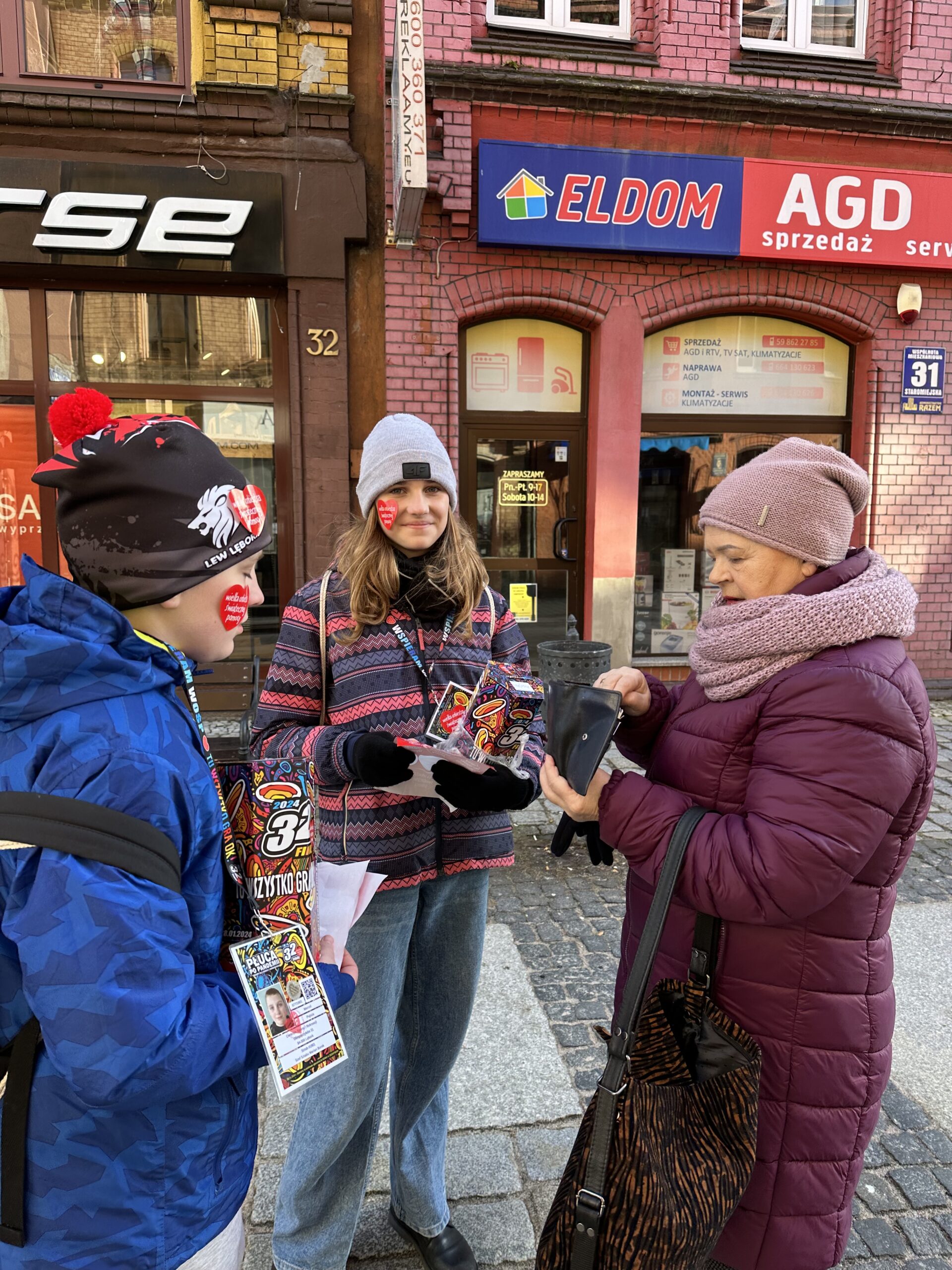 Słoneczna pogoda sprzyjała i zachęcała mieszkańców Lęborka do wspierania 32 Finału WOŚP pod nazwą „PŁUCA PO PANDEM. Gramy dla dzieci i dorosłych!”, a sztab lęborski wspomógł zmarzniętych kwestujących gorącą grochówką i słodką bułką.