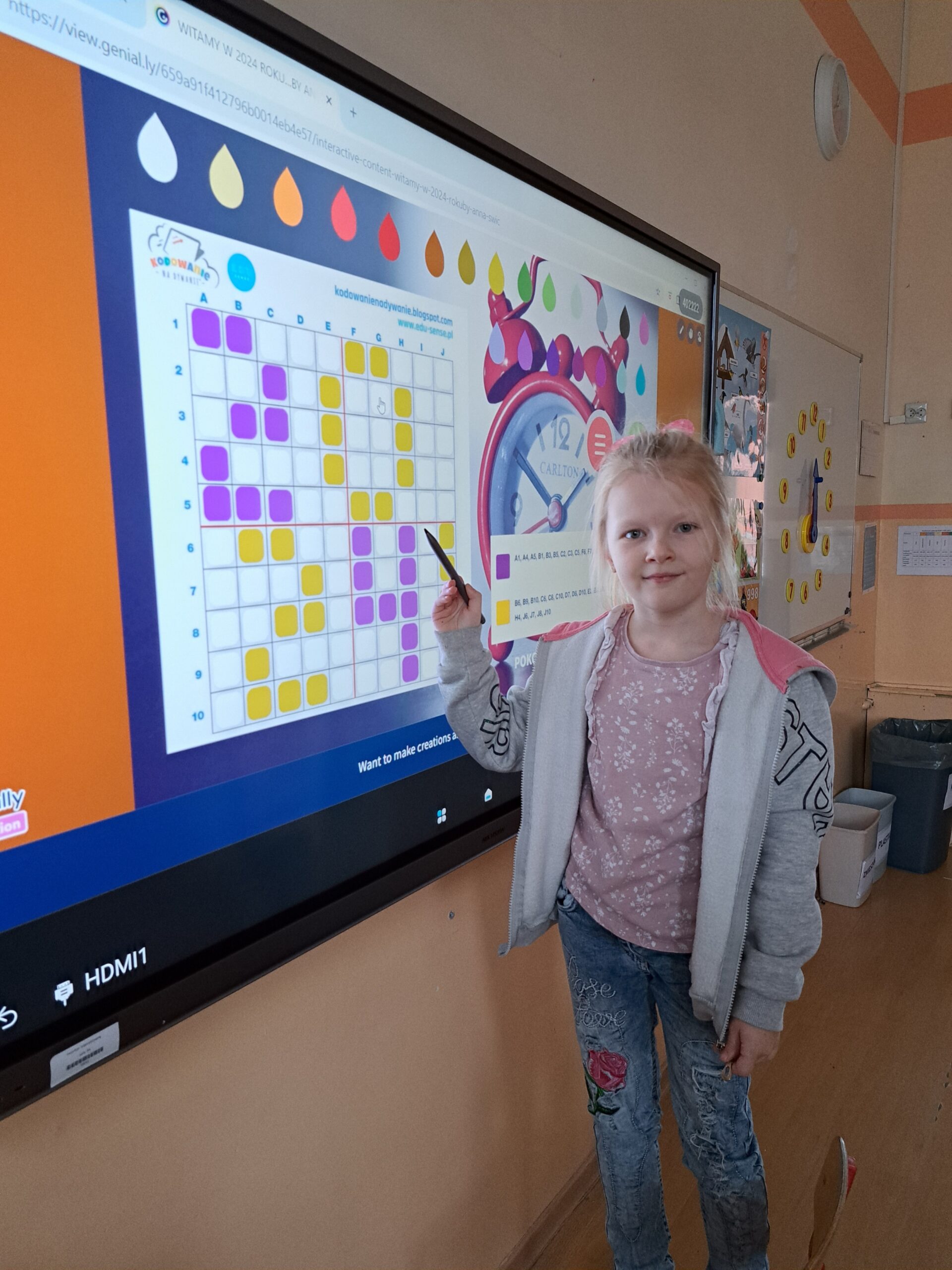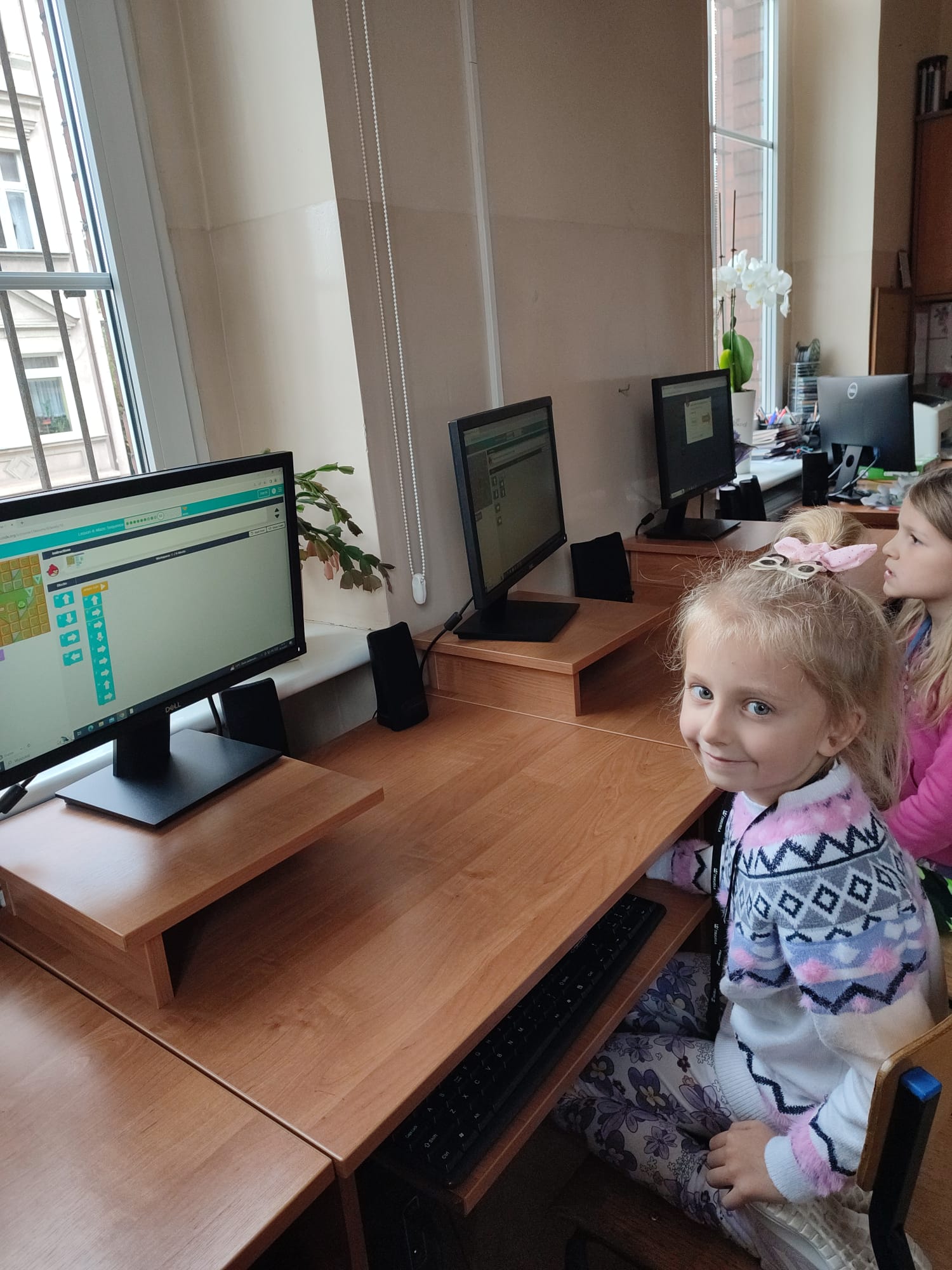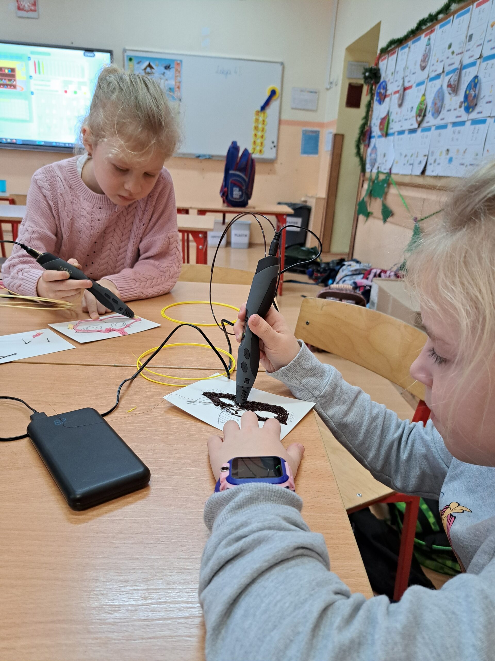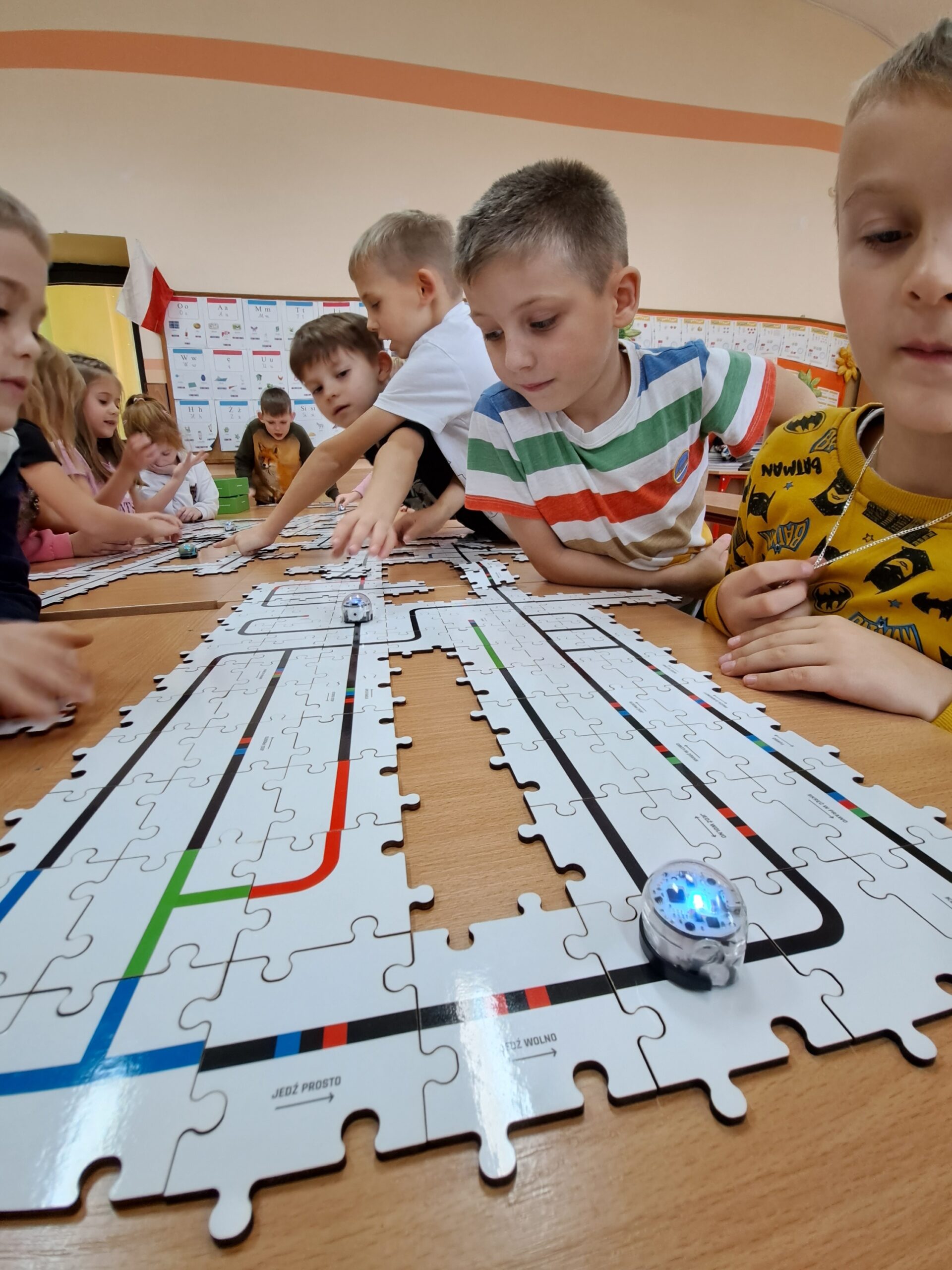 Już od września uczniowie klasy IA i IB biorą udział w zajęciach związanych z kodowaniem, programowaniem i robotyką. Wspólnie rozwiązują zadania na tablicy interaktywnej i na tabletach. Piszą proste programy w aplikacji Scratch Jr i na platformie Code.org. Sprawnie poruszają się na macie do kodowania. Chętnie pracują z Ozobotami, Genibotami i Photonami rozwijając umiejętności logicznego myślenia. Potrafią posługiwać się okularami VR. Integrują się podczas zabaw ruchowych na interaktywnym dywanie. Poznają możliwości ostatnio zakupionych długopisów 3D. Tworzą własne projekty. Dzieci chętnie uczęszczają na zajęcia, rozwijają swoje zainteresowania.