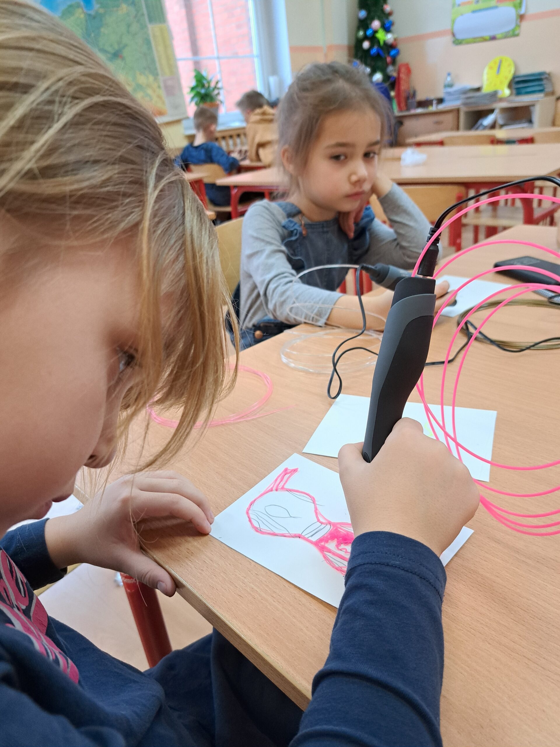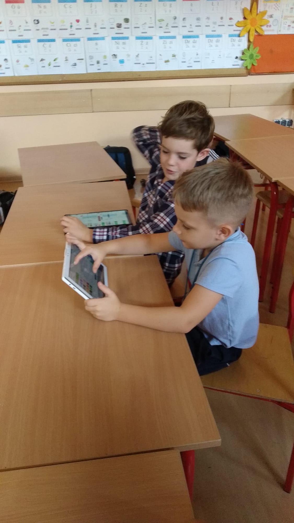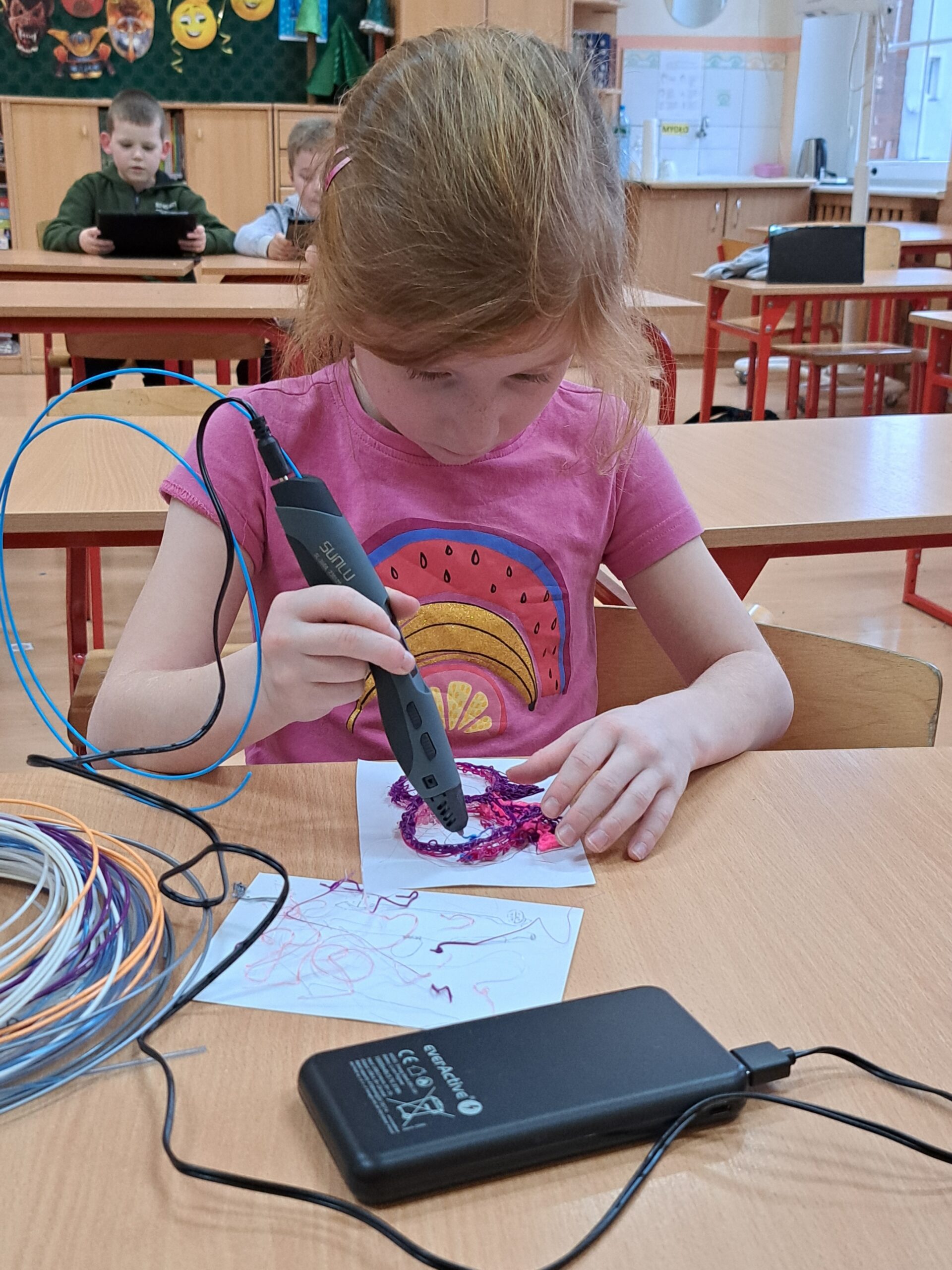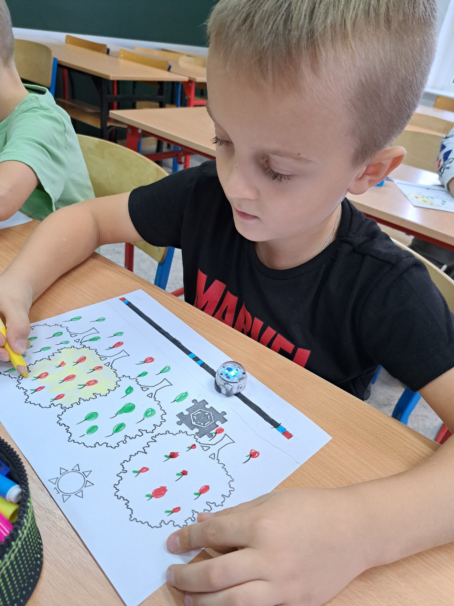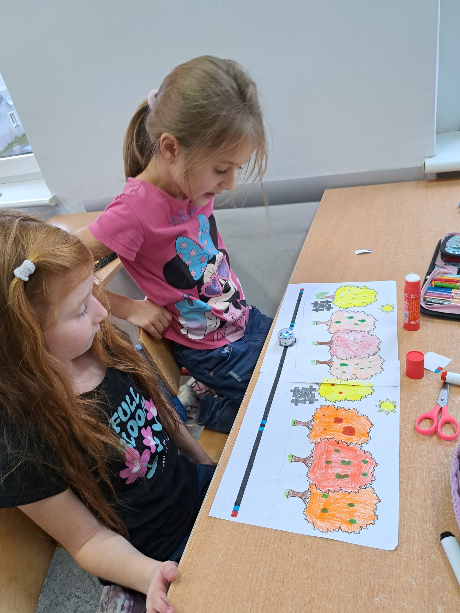 Już od września uczniowie klasy IA i IB biorą udział w zajęciach związanych z kodowaniem, programowaniem i robotyką. Wspólnie rozwiązują zadania na tablicy interaktywnej i na tabletach. Piszą proste programy w aplikacji Scratch Jr i na platformie Code.org. Sprawnie poruszają się na macie do kodowania. Chętnie pracują z Ozobotami, Genibotami i Photonami rozwijając umiejętności logicznego myślenia. Potrafią posługiwać się okularami VR. Integrują się podczas zabaw ruchowych na interaktywnym dywanie. Poznają możliwości ostatnio zakupionych długopisów 3D. Tworzą własne projekty. Dzieci chętnie uczęszczają na zajęcia, rozwijają swoje zainteresowania.