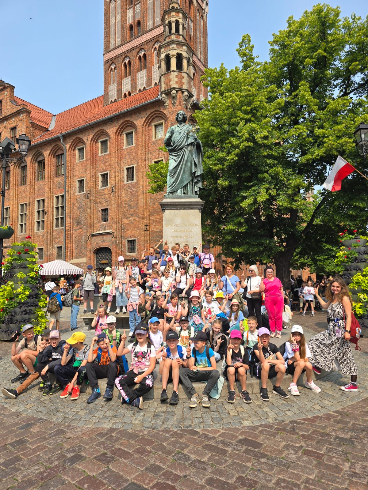 W czerwcu klasy 3a i 3b wraz z opiekunami wybrały się na wycieczkę do Torunia. To był bardzo długi dzień pełen wrażeń. Dzieci przeszły z przewodnikiem przez starówkę i dowiedziały się od pani przewodniczki wielu ciekawostek o Toruniu. Następnie był przejazd tramwajem do Młynów Wiedzy. Kolejną atrakcją były warsztaty pieczenia pierników. Potem strudzeni wędrowcy posilili się pysznym obiadem w restauracji. Na zakończenie pobytu w Toruniu obowiązkowo odwiedziliśmy planetarium, żeby poznać tajniki Kosmosu. Przez cały dzień była piękna pogoda, było upalnie, gdy wsiedliśmy do autokaru, zaczął padać deszcz, który towarzyszył nam aż do Lęborka. Wszyscy wrócili zmęczeni ale zadowoleni i pełni wspaniałych wrażeń