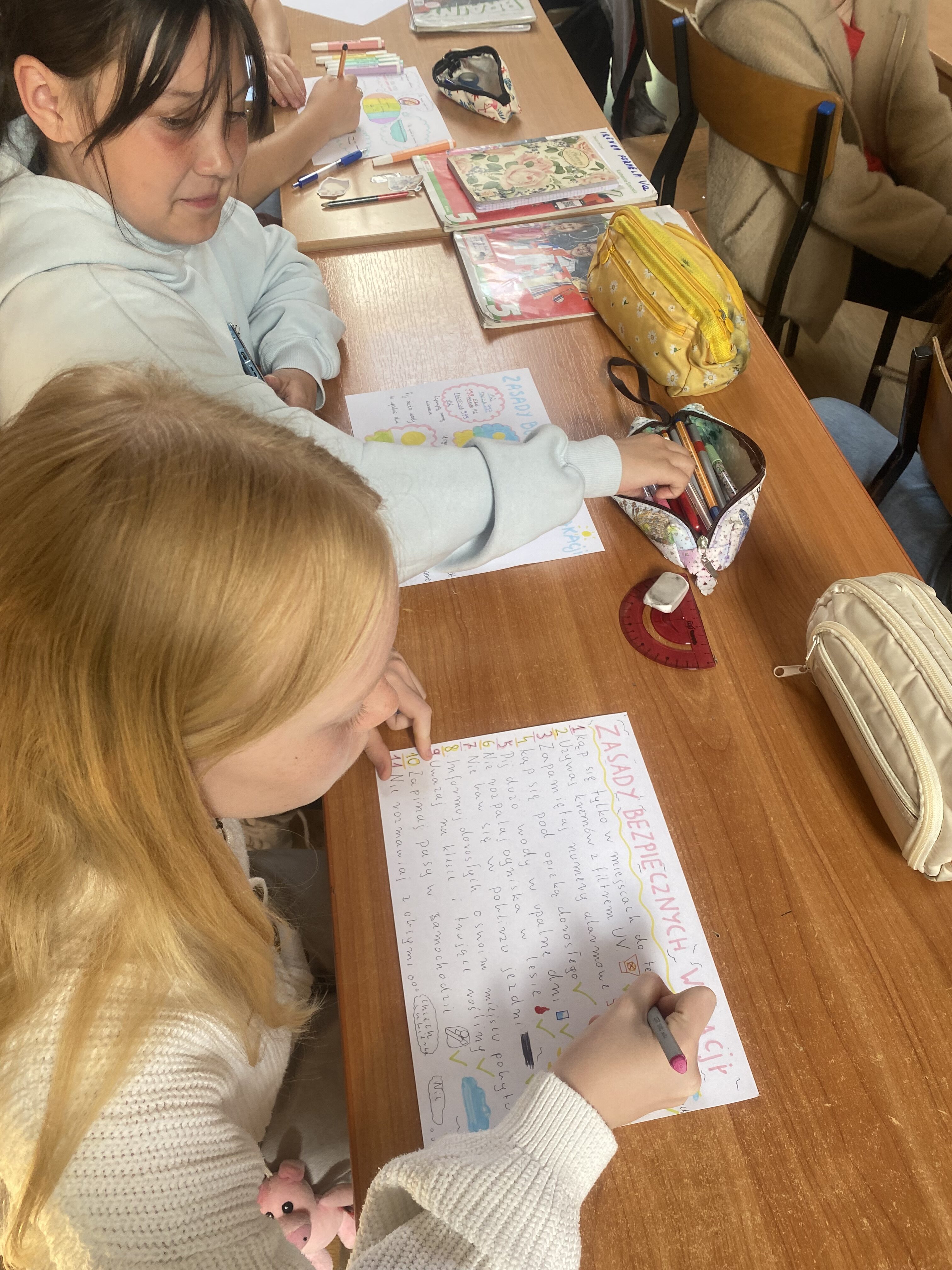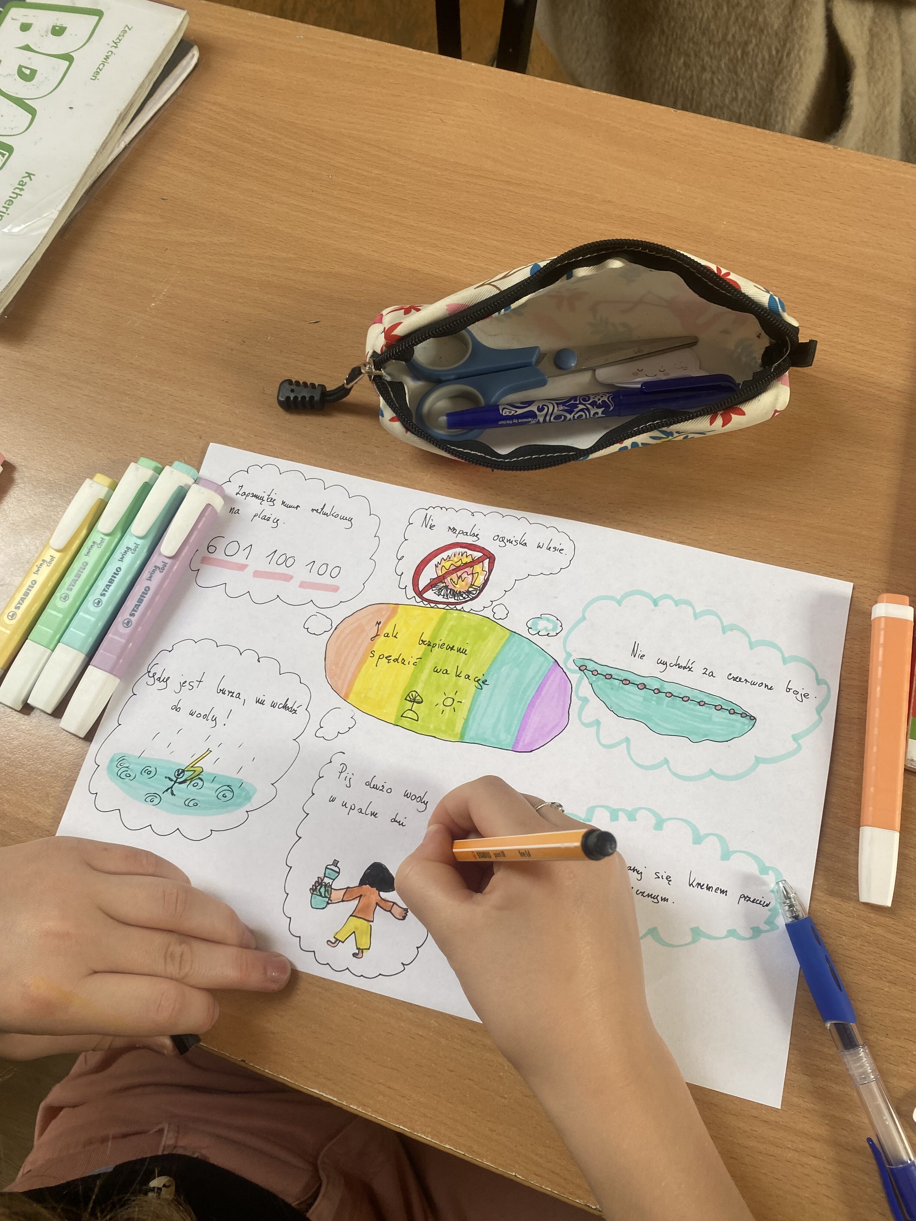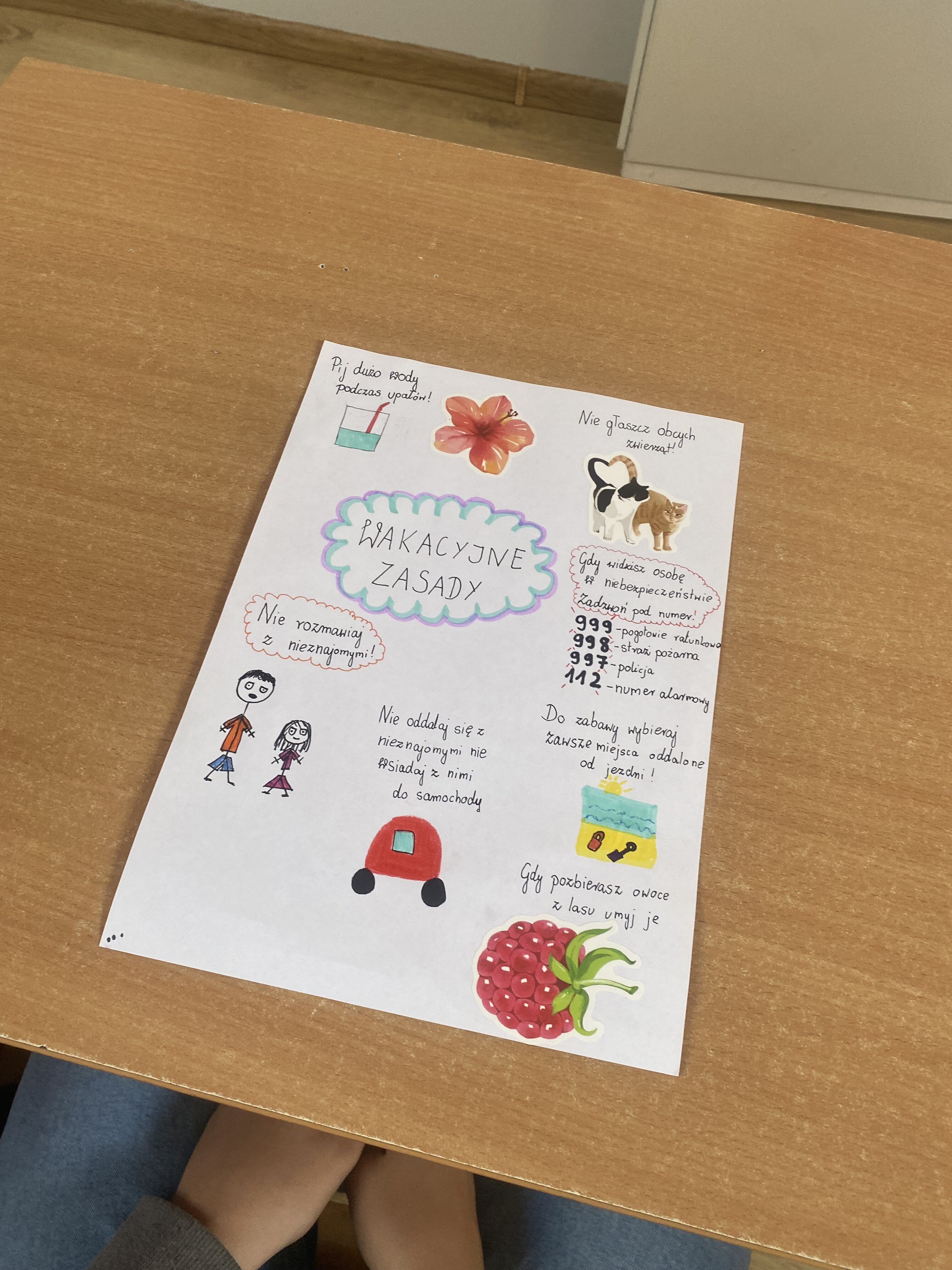 W ramach programu ministerialnego „Tydzień dla bezpieczeństwa” klasa 5a wykonała plakaty dotyczące bezpiecznego spędzania czasu podczas wakacji.