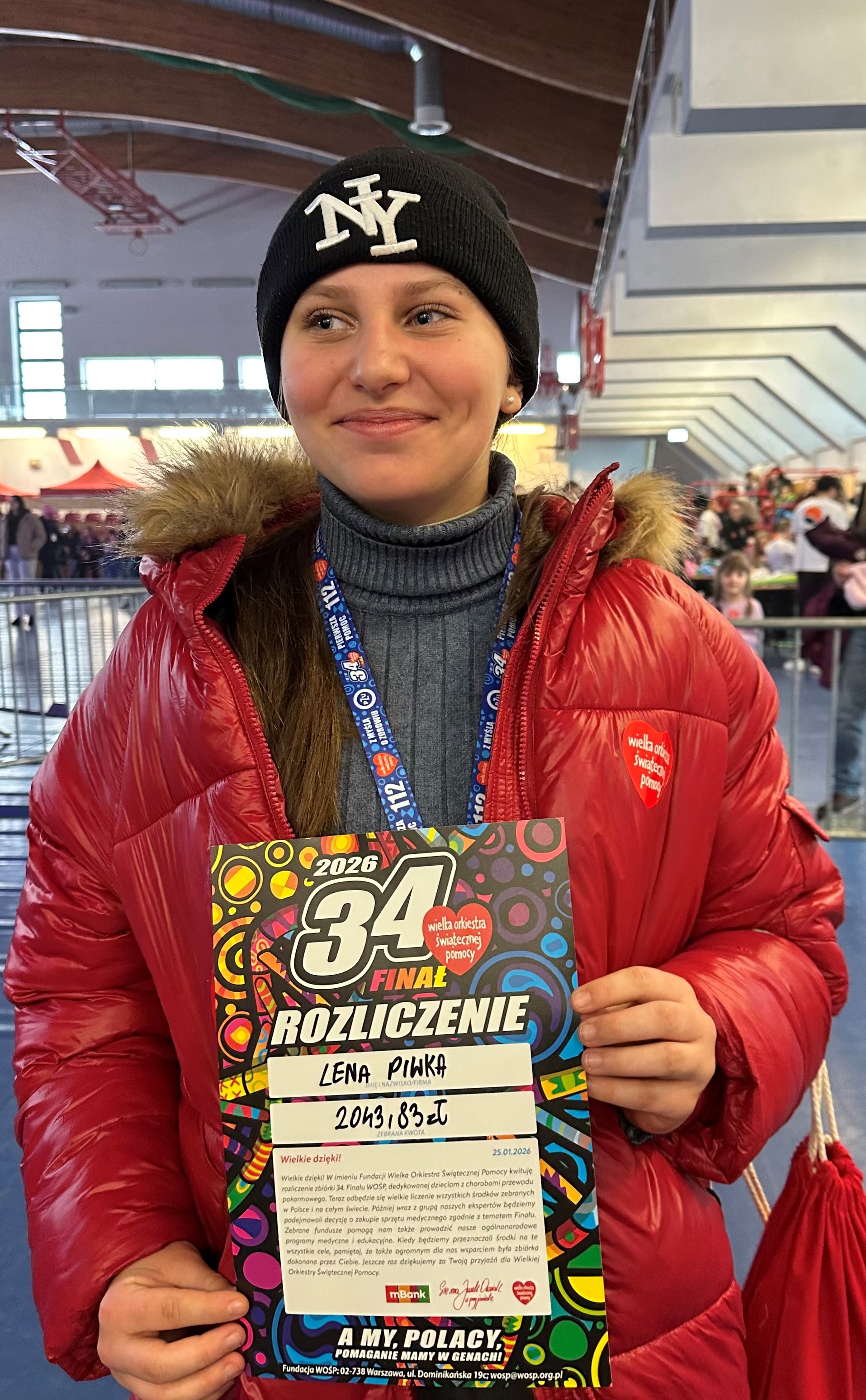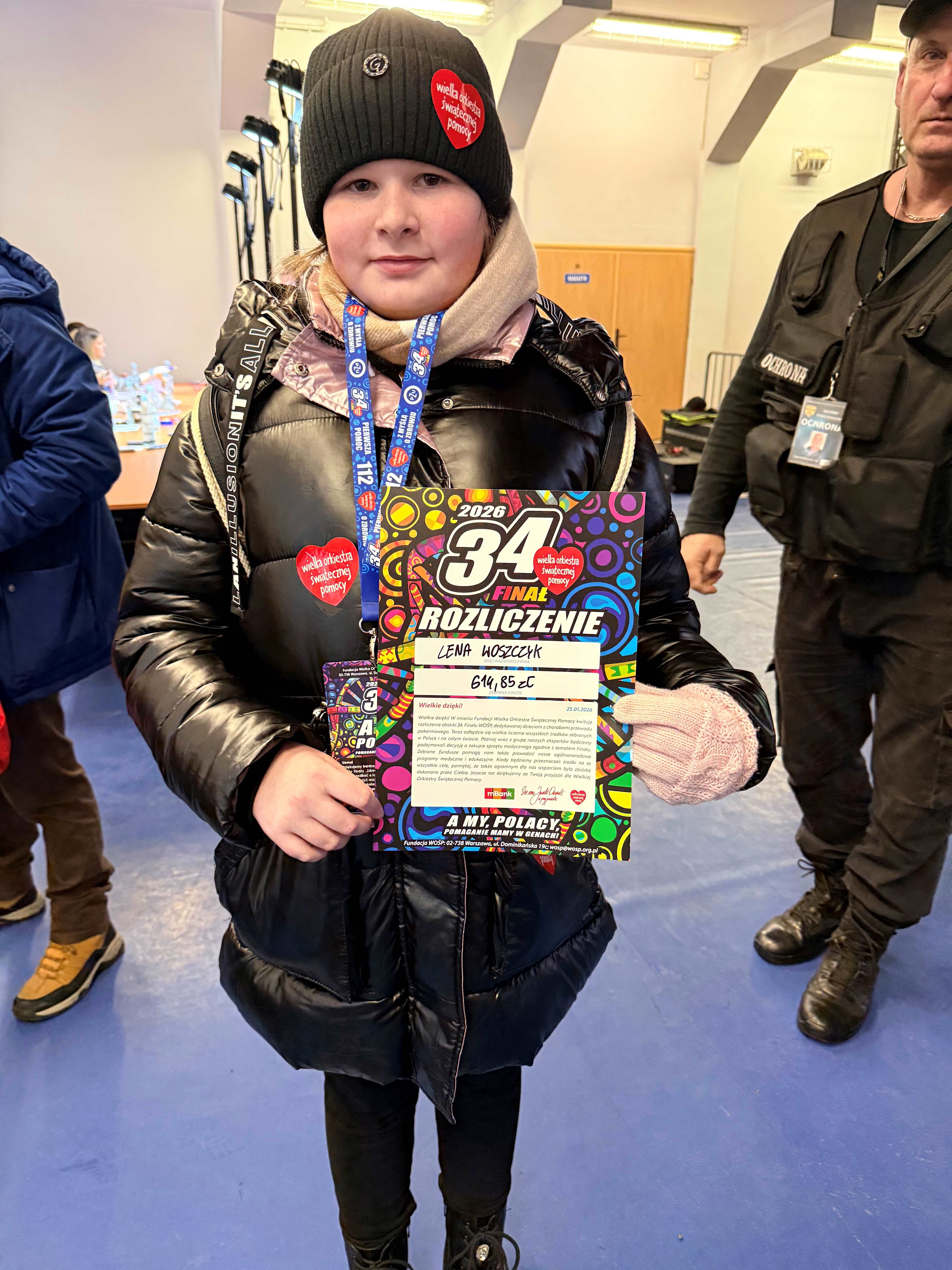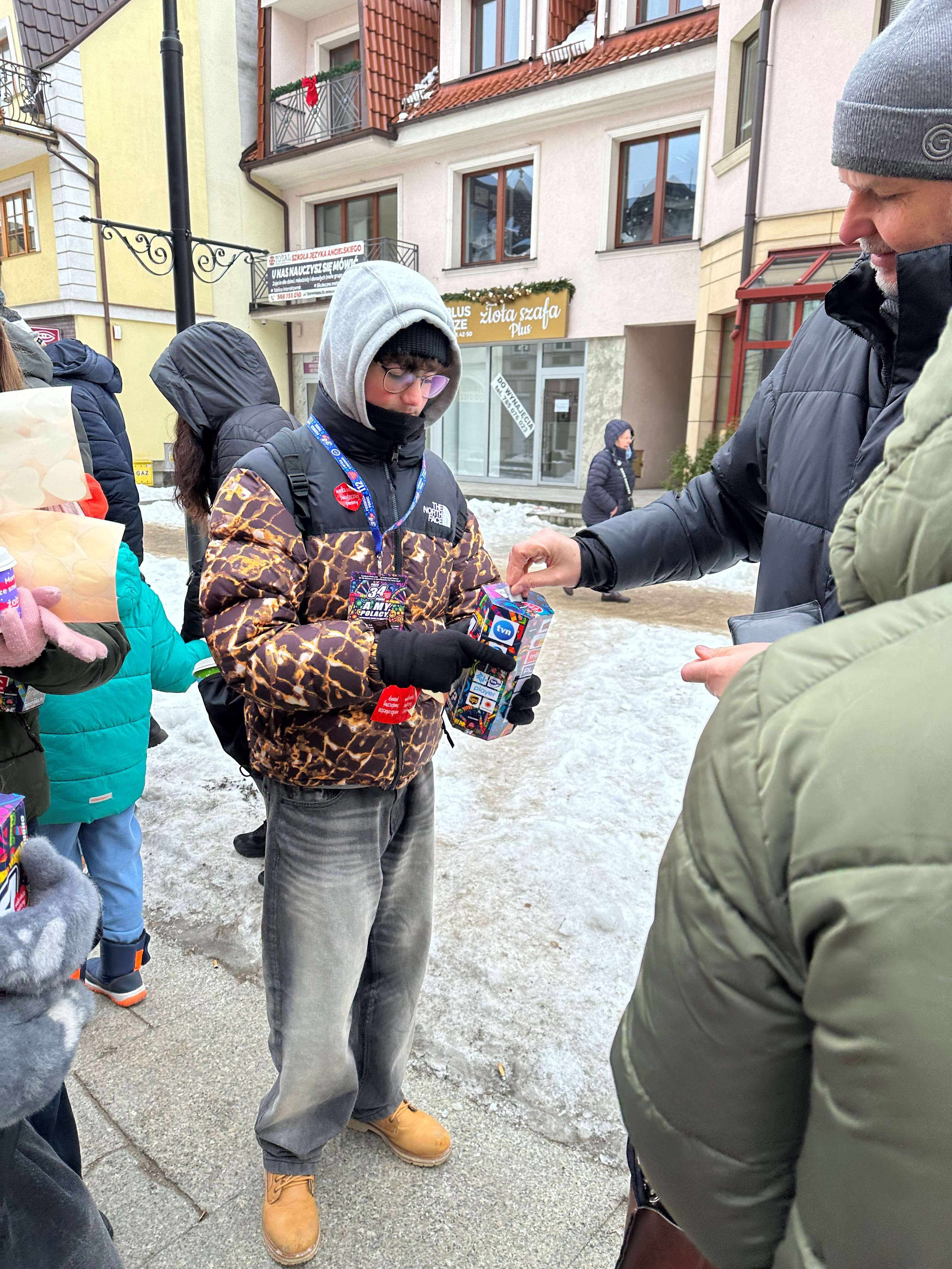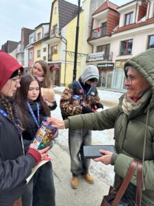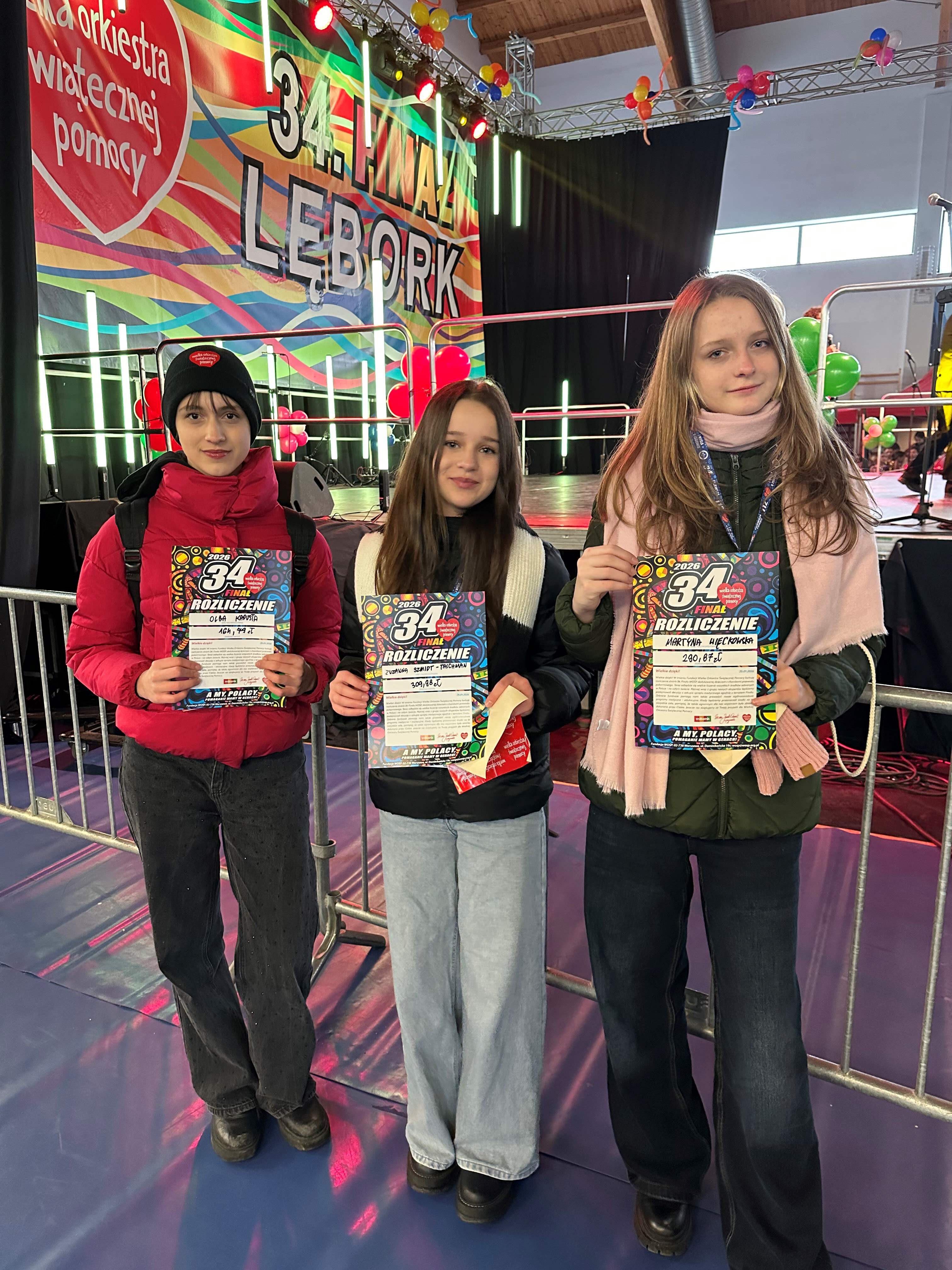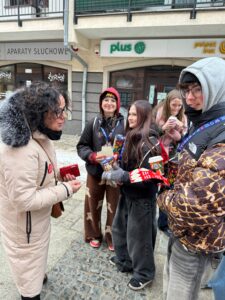 W dniu 34 Finału Wielkiej Orkiestry Świątecznej Pomocy, 25 stycznia br. 12 uczniów naszej szkoły wraz z opiekunem SKW Ewą Gromulską uczestniczyło w zbiórce pieniędzy na ulicach miasta Lęborka do puszek indywidualnych WOŚP. Byli to: Olga Kapusta, Zuzanna Szmidt-Tajchman, Martyna Więckowska (kl. 8b), Kalina Gołębiewska, Milena Wolska, Marta Von Mach, Jan Bizewski, Patrick Kelly (kl. 8c), Lena Piwka, Róża Traskowska, Lena Woszczyk (kl. 6s), Szymon Wolski (kl.4a). Tradycyjnie do wspólnej kwesty dołączyła do nas p. Małgorzata Sadowska wraz z najmłodszymi wolontariuszami sztabu lęborskiego Maksiem, Frankiem i Leonem, którzy powiększyli kwotę SKW o 4 tys. zł. Łącznie nasi wolontariusze zebrali 13 480,22 zł do puszek indywidualnych.