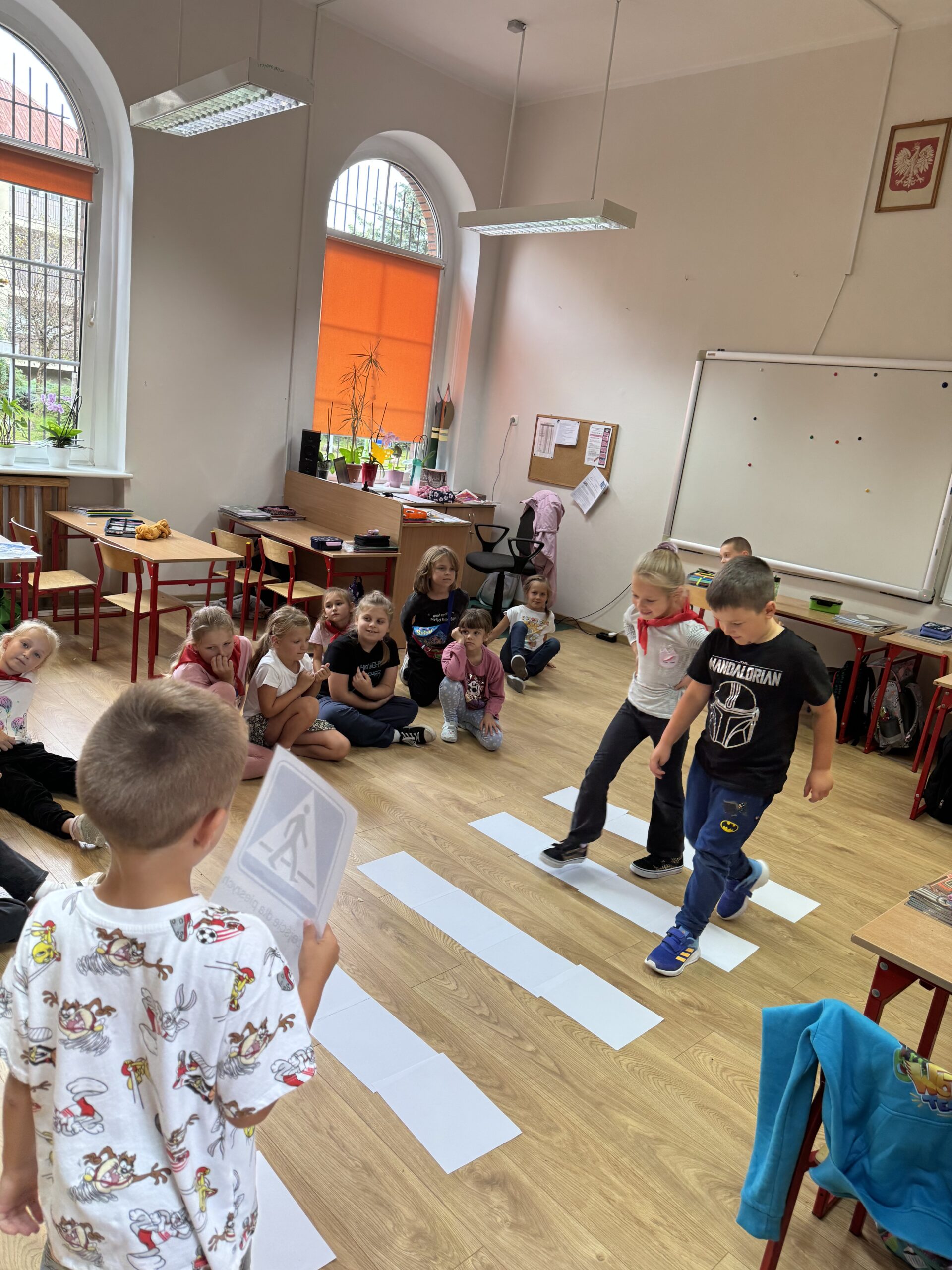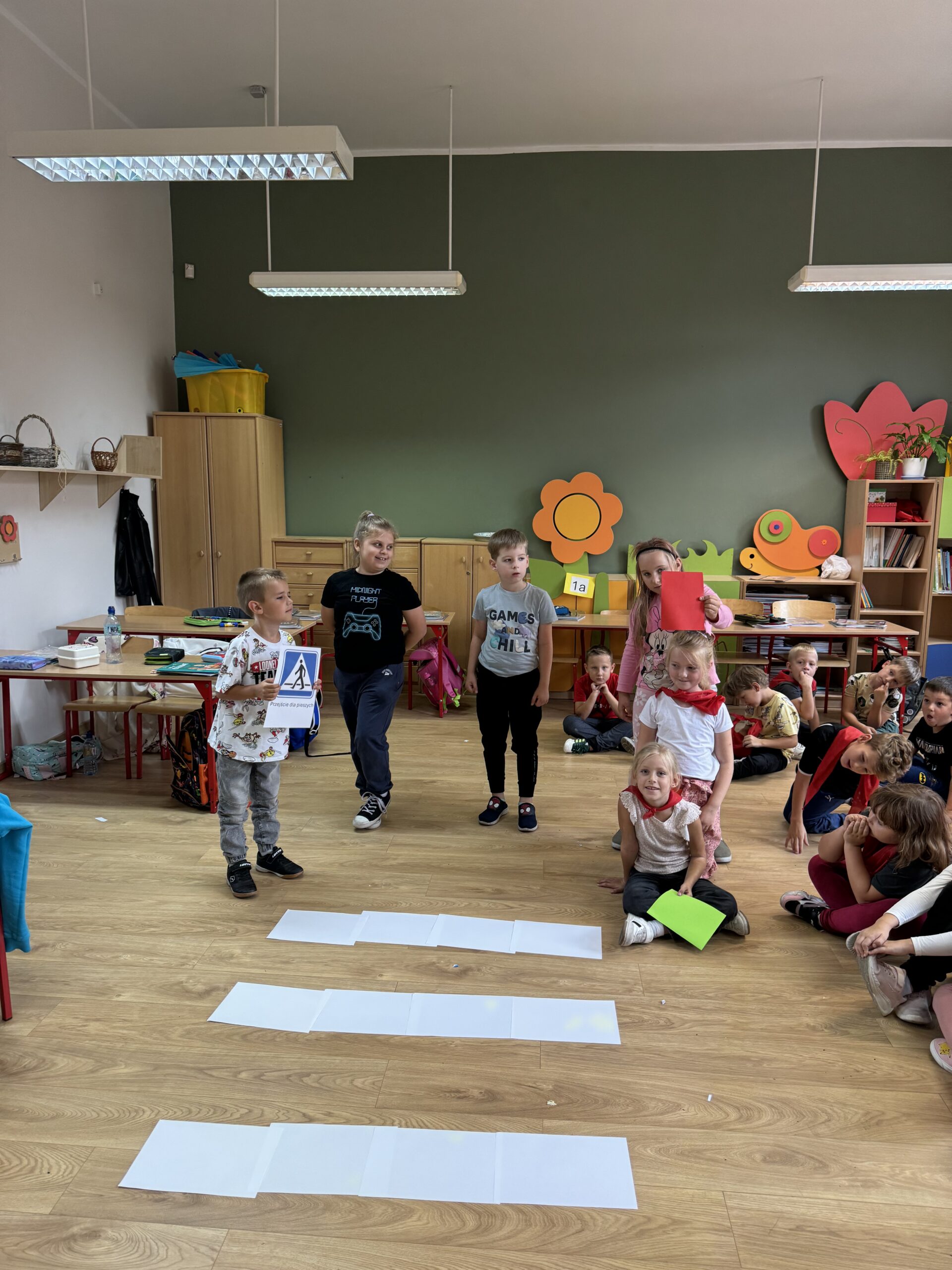 Te i inne zasady ruchu drogowego uczniowie klasy 1a poznali podczas zajęć.