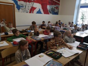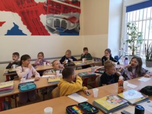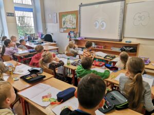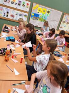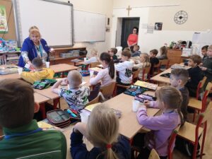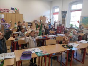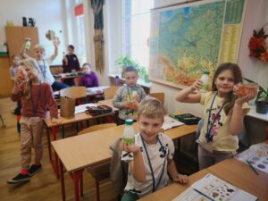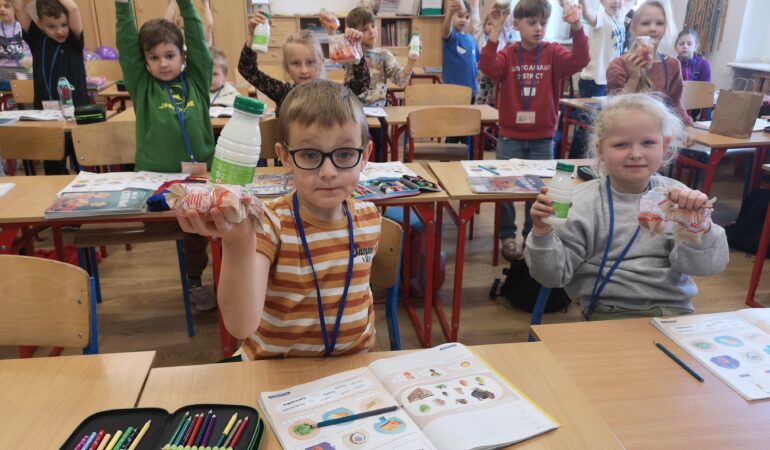 W ramach programu dla szkół, w którym nasza szkoła aktywnie uczestniczy, dzieci otrzymały kefiry i marchewki oraz rozmawiały o zaletach mleka, warzyw i owoców w codziennej diecie. Nie zabrakło też muzycznych akcentów – uczniowie śpiewali piosenki o warzywach inspirowane wierszami Juliana Tuwima, które wprowadziły wiele radości i uśmiechu.