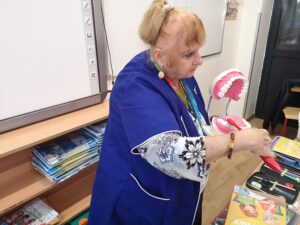 O higienie jamy ustnej przypomniała natomiast pani Ewa – pielęgniarka szkolna, która przeprowadziła fluoryzację zębów i opowiedziała, jak prawidłowo dbać o zęby każdego dnia.