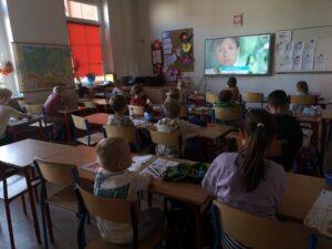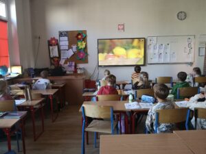 Podczas zajęć obejrzeli film edukacyjny o zdrowym odżywianiu, dzięki któremu dowiedzieli się, jak ważne jest spożywanie wartościowych posiłków każdego dnia.