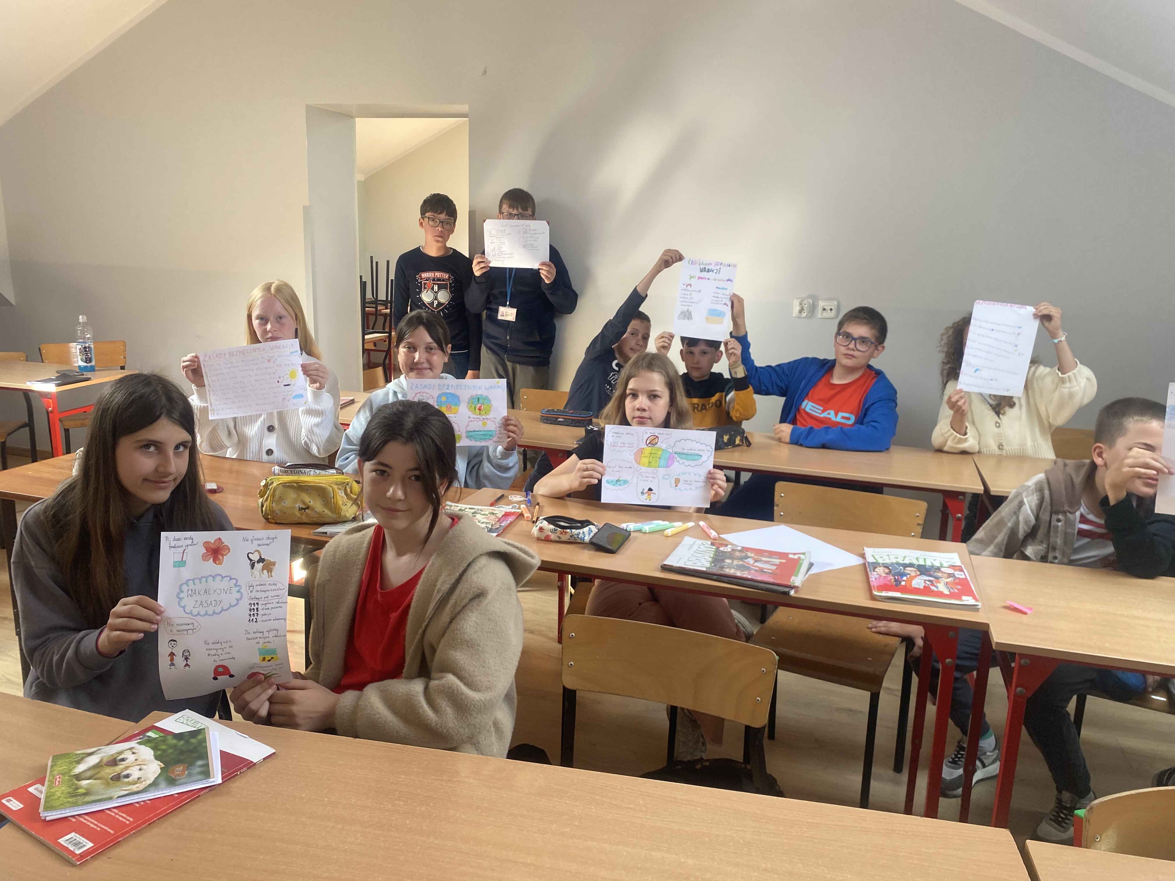 W ramach programu ministerialnego „Tydzień dla bezpieczeństwa” klasa 5a wykonała plakaty dotyczące bezpiecznego spędzania czasu podczas wakacji.