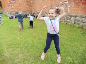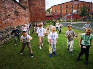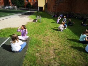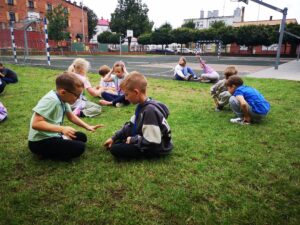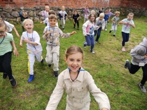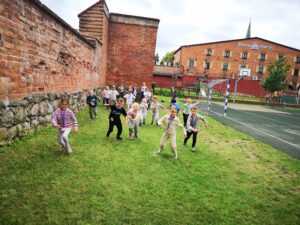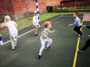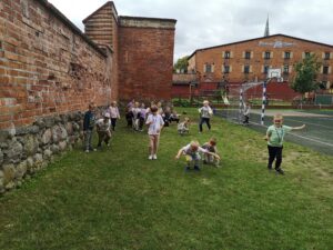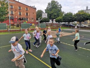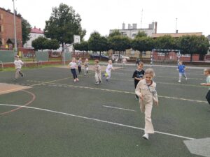 Uczniowie klasy 1b, w ramach projektu Erasmus+ EDUKACYJNA ODYSEJA – Technologie, Sport, Języki w przestrzeni otwartej, wzięli udział w zabawach integracyjnych na świeżym powietrzu. Zajęcia pt. „Zabawy integracyjne – Let’s play together” wzbogacono elementami CLIL. Dzieci poznały proste słowa w języku angielskim związane z częściami ciała, rozwijały sprawność ruchową oraz współpracę w parach i grupie. Wszyscy uczniowie świetnie się bawili podczas zajęć z edukacji wczesnoszkolnej.