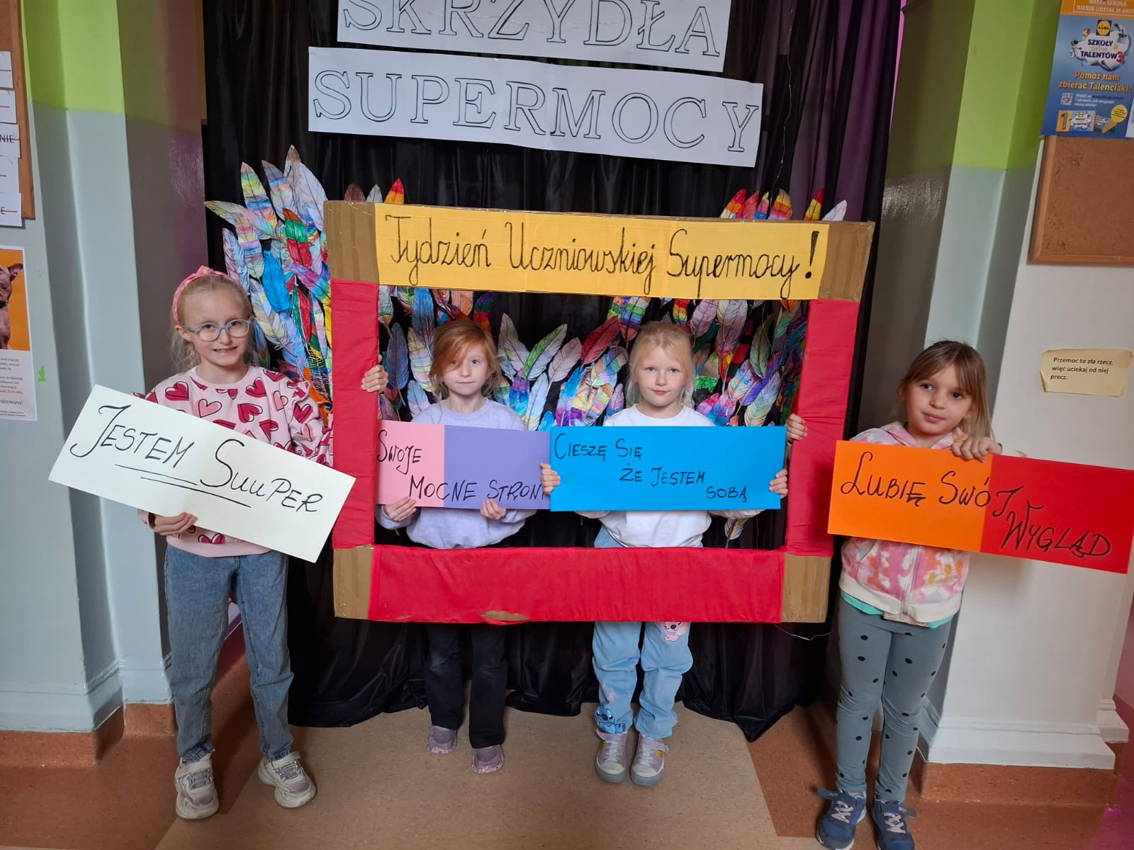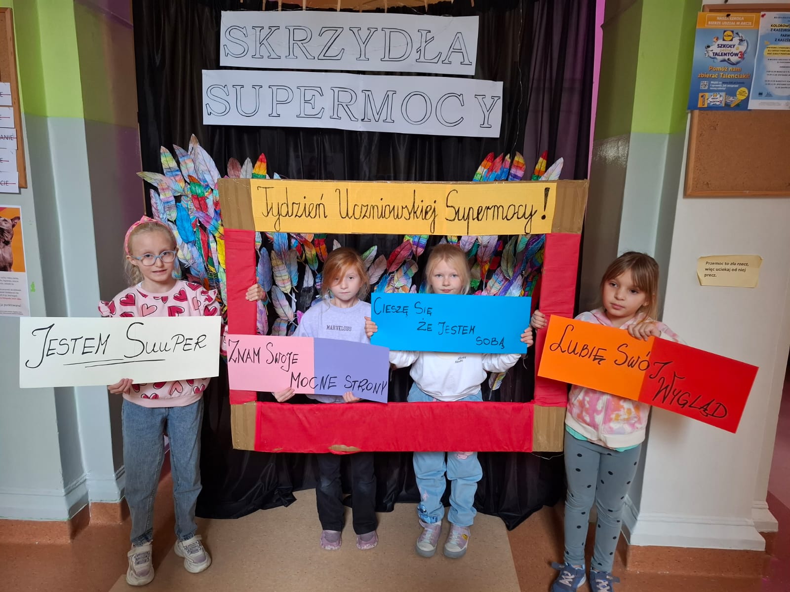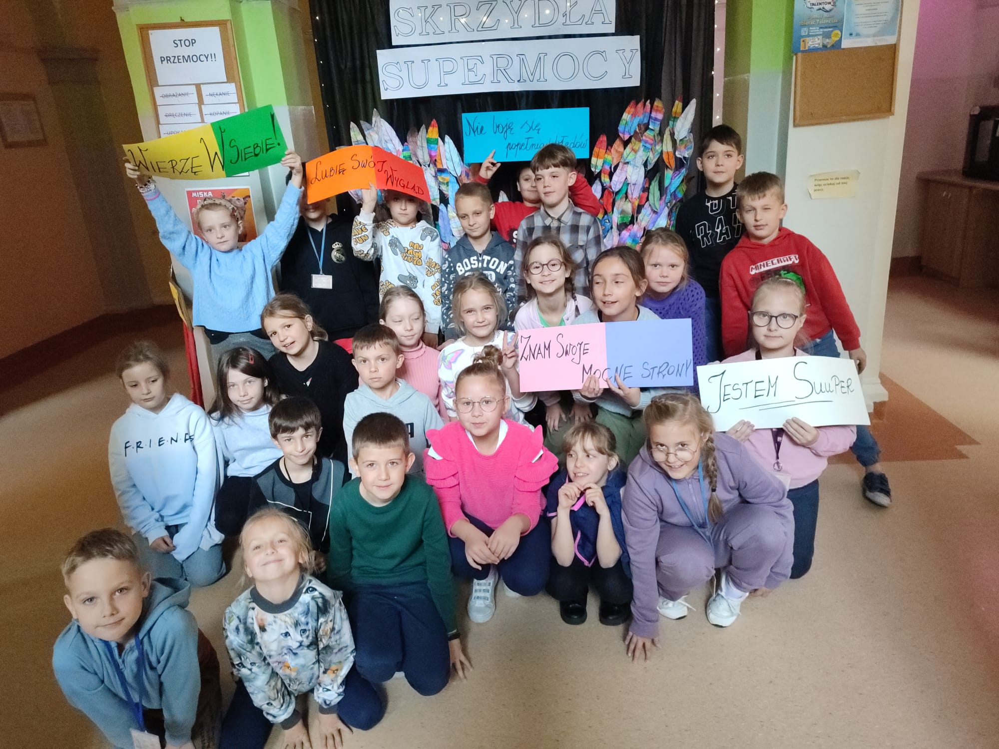 W dniach 21-25 października w naszej szkole odbyła się wyjątkowa akcja pt.„Tydzień Uczniowskiej SuperMocy”. W ramach obchodów uczniowie i uczennice w przeróżnych formach poznawali swoje Moce! Celem tej akcji było: lepsze poznanie siebie, uświadomienie uczniom ich mocnych stron, budowanie poczucia własnej wartości, wzmacnianie własnego pozytywnego wizerunku oraz integracja. W ramach zajęć uczniowie wspólnie stworzyli m.in. skrzydła mocy, drzewo talentów oraz nadali magiczne moce swoim imionom. Dziękujemy wszystkim za włączenie się do akcji!