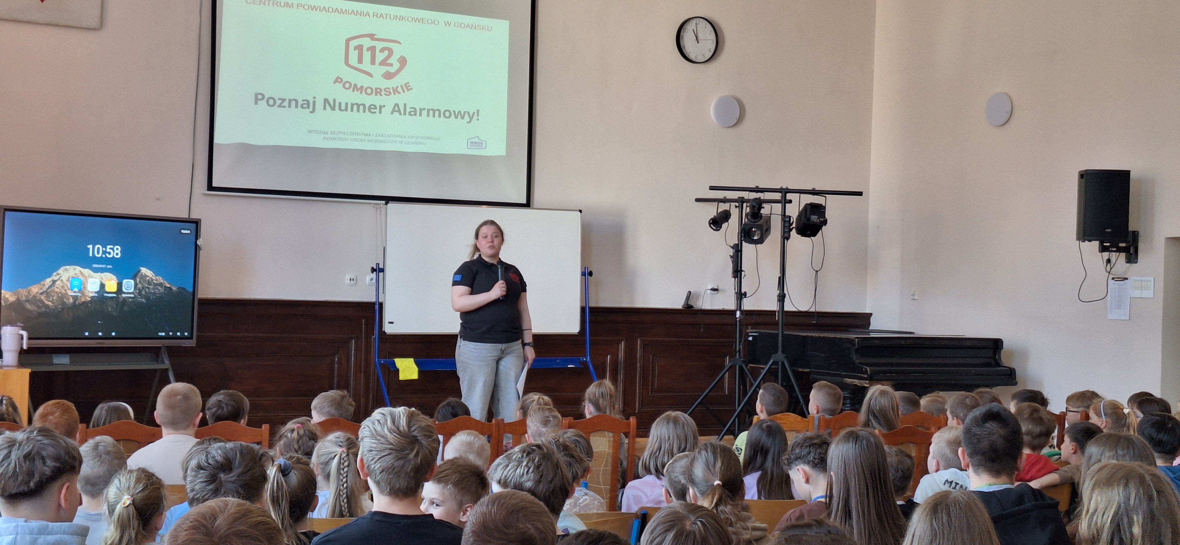 27 kwietnia w Szkole Podstawowej nr 3 w Lęborku odbyło się spotkanie z przedstawicielami Centrum Powiadamiania Ratunkowego w Gdańsku. Uczniowie mieli okazję poznać zasady prawidłowego korzystania z numeru alarmowego 112 oraz dowiedzieć się, jak zachować się w sytuacjach zagrożenia. Podczas prelekcji omówiono, kiedy należy wzywać pomoc, jakie informacje trzeba przekazać operatorowi oraz jak działa aplikacja Alarm112. Uczniowie z zainteresowaniem uczestniczyli w zajęciach i chętnie zadawali pytania dotyczące pracy operatorów numeru alarmowego. Spotkanie było bardzo pouczające i pozwoliło uczniom zdobyć cenną wiedzę na temat bezpieczeństwa i odpowiedzialnego reagowania w nagłych sytuacjach.