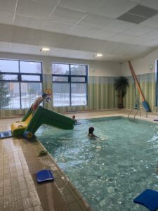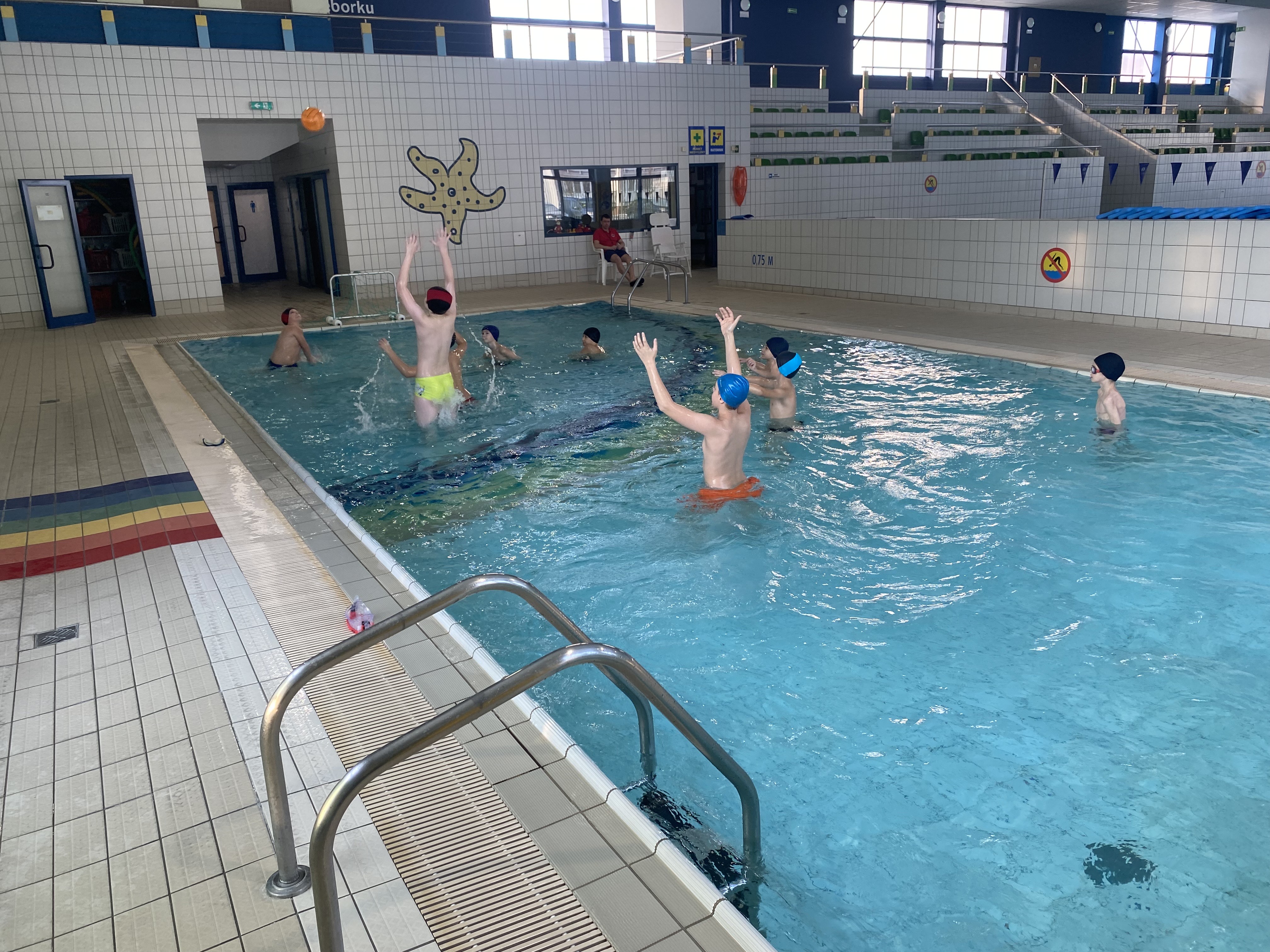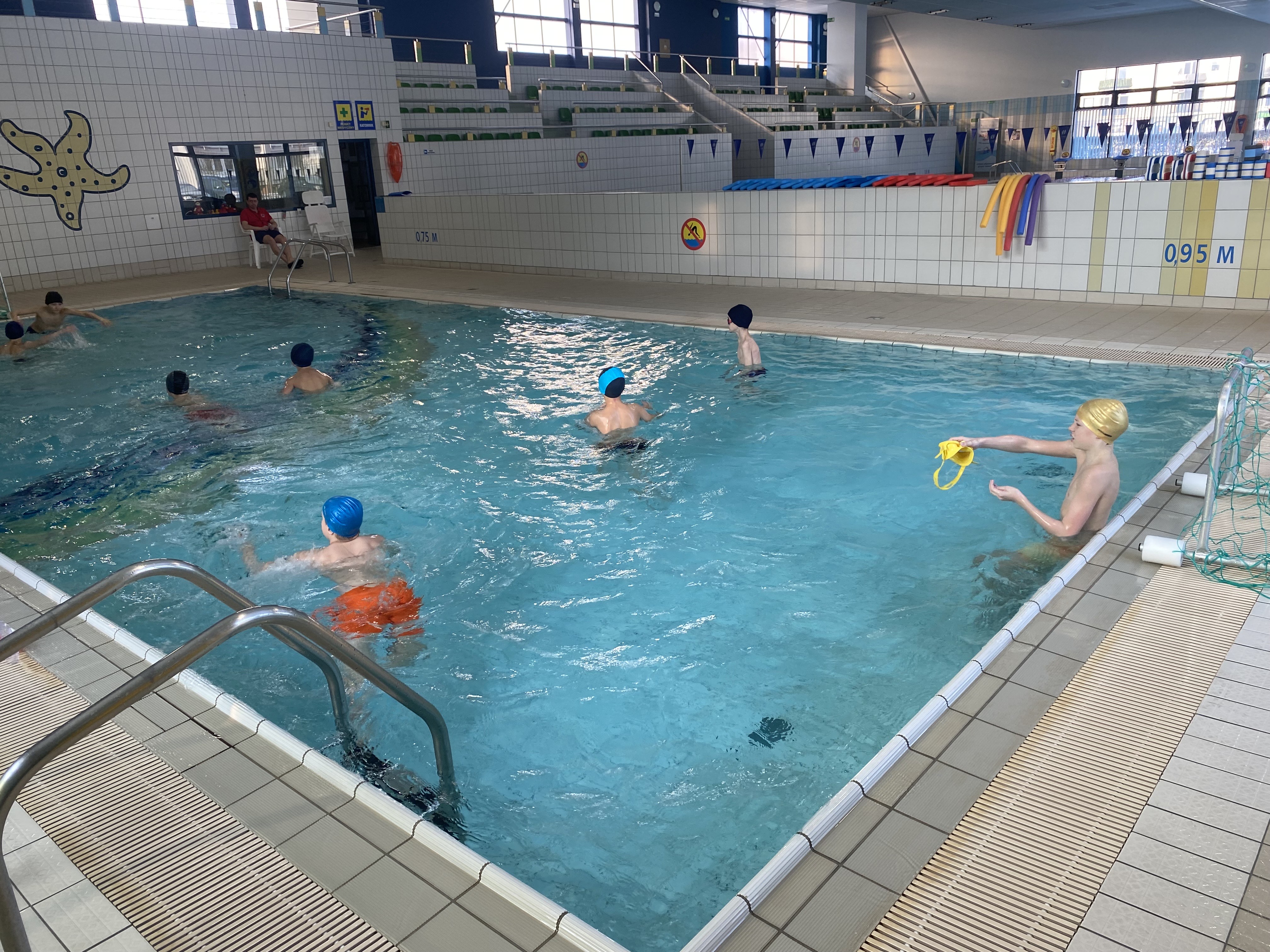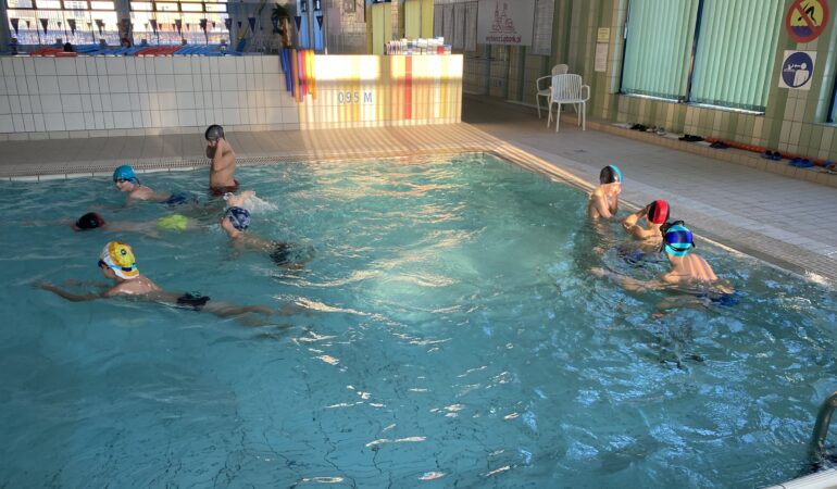 Podczas gier i zabaw ruchowych w wodzie zastosowano metodę CLIL (Content and Language Integrated Learning), łącząc aktywność fizyczną z nauką języka angielskiego. Uczniowie uczestniczyli w zadaniach i grach zespołowych, posługując się angielskim słownictwem oraz poleceniami związanymi z ruchem w wodzie, współpracą i zasadami bezpieczeństwa.