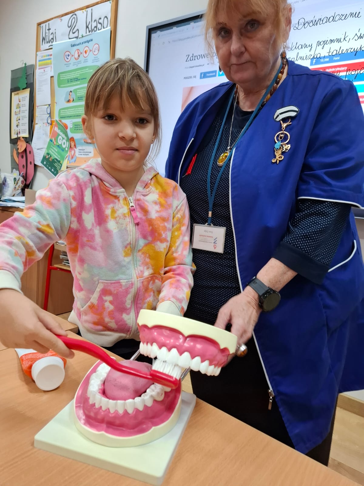 W trosce o zdrowy uśmiech uczniowie naszej szkoły przyłączyli się do ogólnopolskiego programu edukacyjnego PCK „Dziel się Uśmiechem”.  Głównym celem jest poznanie przez dzieci prostych sposobów jak efektywnie dbać o zdrowie zębów. Zajęcia prowadzone są przez wychowawców klas 1-3 w oparciu o dopasowane do wieku, atrakcyjne materiały wpisujące się w podstawę programową. Program realizowany jest w różnym tempie w poszczególnych klasach. Poniżej krótka fotorelacja z zajęć już przeprowadzonych.