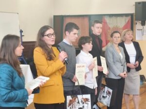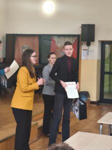 Po zaciętej rywalizacji ogłoszono laureatów, którym Pani Posłanka w asyście pracowników Wszechnicy sejmowej wręczyli dyplomy i cenne nagrody. I miejsce zajął Michał Penka z SP nr 8, II miejsce – Jan Babij (również SP nr 8), a III miejsce – Konstanty Piotrowski, uczeń naszej Szkoły Podstawowej nr 3!