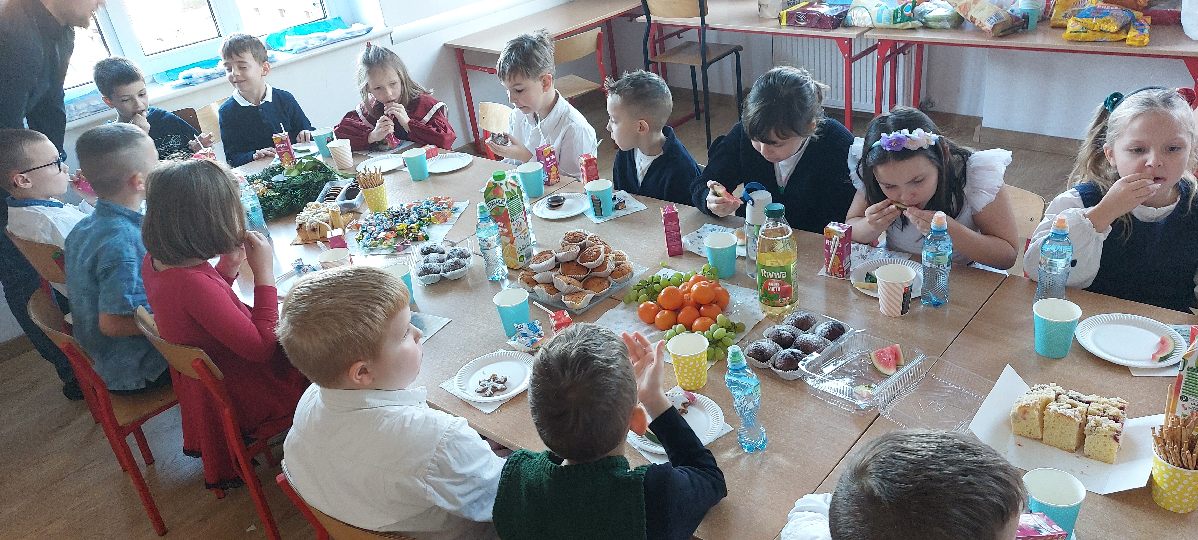 5. 19.12.2025 odbyła się wigilia klasowa, podczas której składaliśmy życzenia, śpiewaliśmy kolędy i częstowaliśmy się słodkościami.