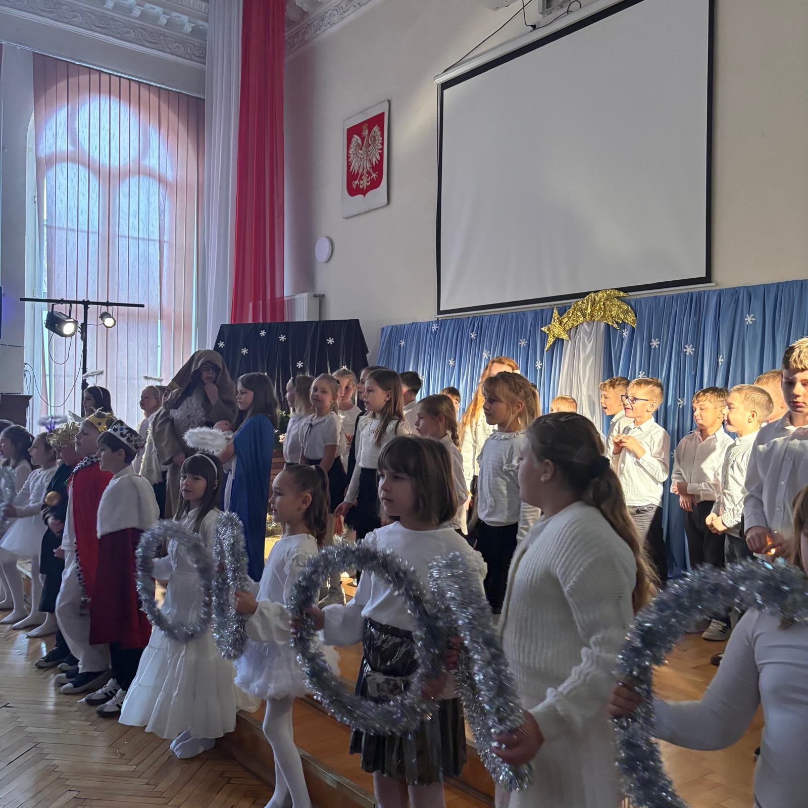 18 grudnia uczniowie klas 1b i 2a, pod opieką swoich wychowawców, wspólnie z uczennicą klasy trzeciej Agatą Boldą, przygotowali wyjątkowe Jasełka dla uczniów, nauczycieli oraz pracowników szkoły.