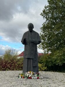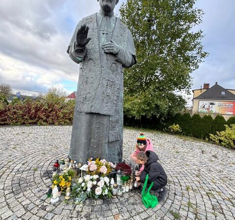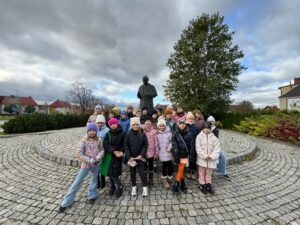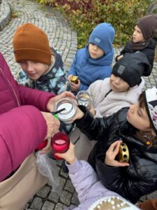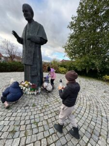 31 października uczniowie klasy 2a wybrali się pod pomnik św. Jana Pawła II. Celem wyjścia było uczczenie pamięci Papieża Polaka oraz refleksja nad zbliżającym się Dniem Wszystkich Świętych. Dzieci złożyły kwiaty i zapaliły znicze, oddając hołd wielkiemu rodakowi.