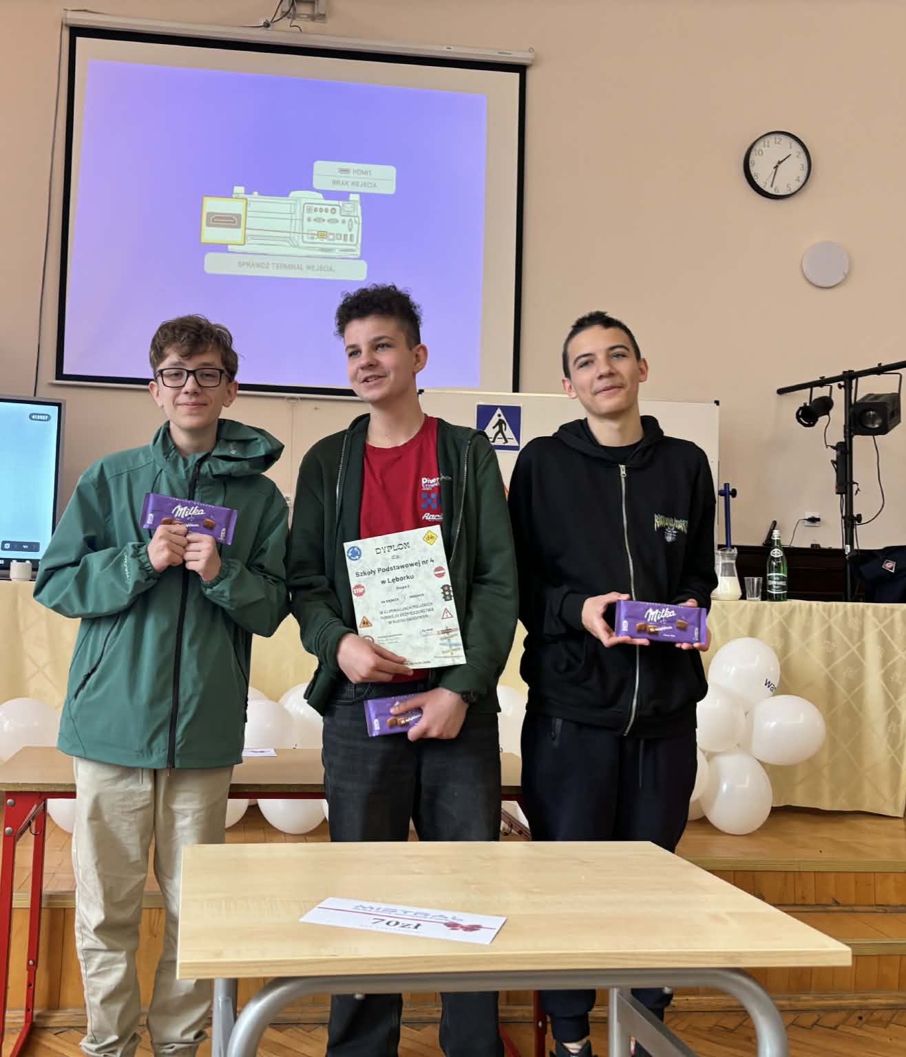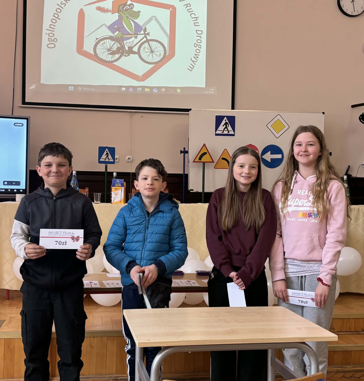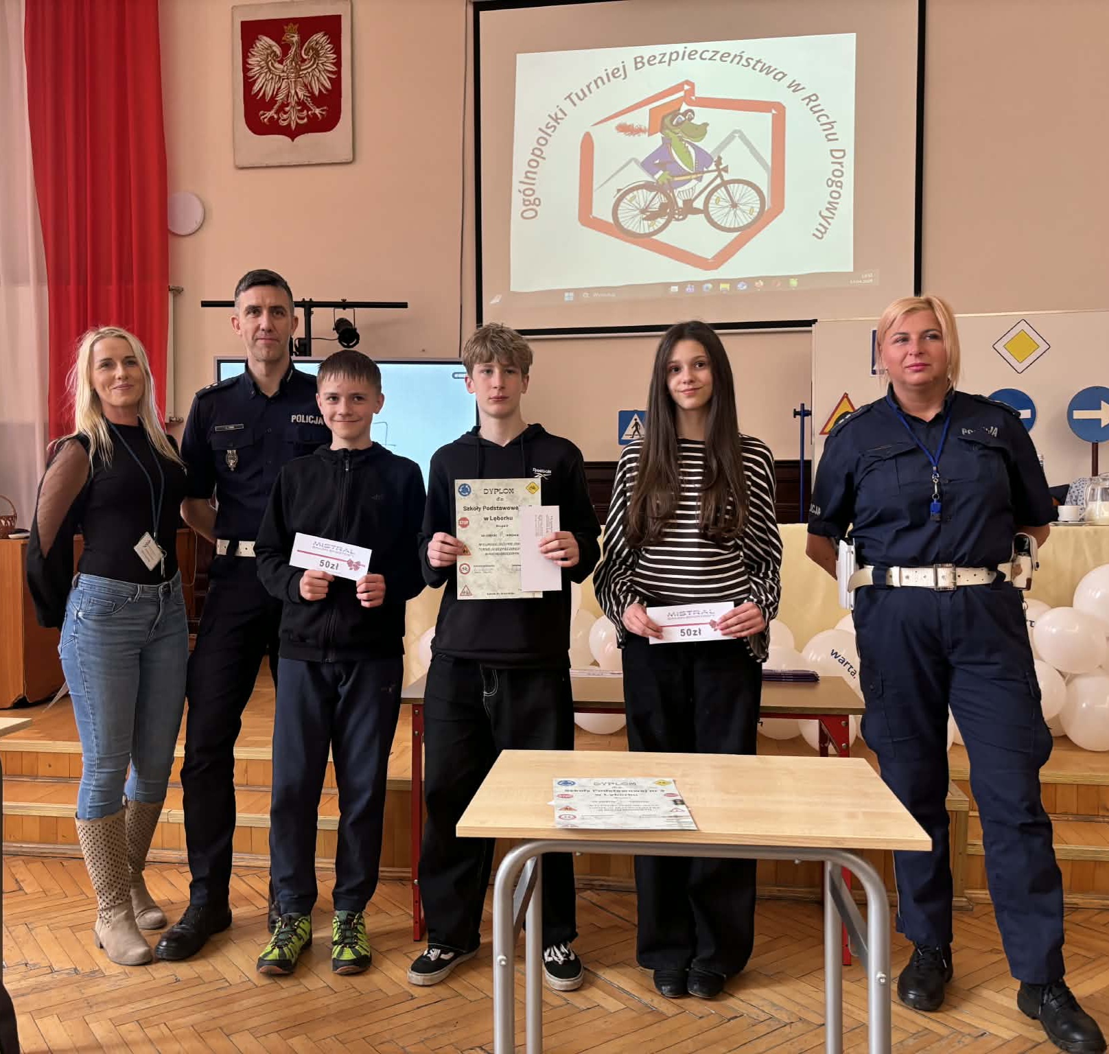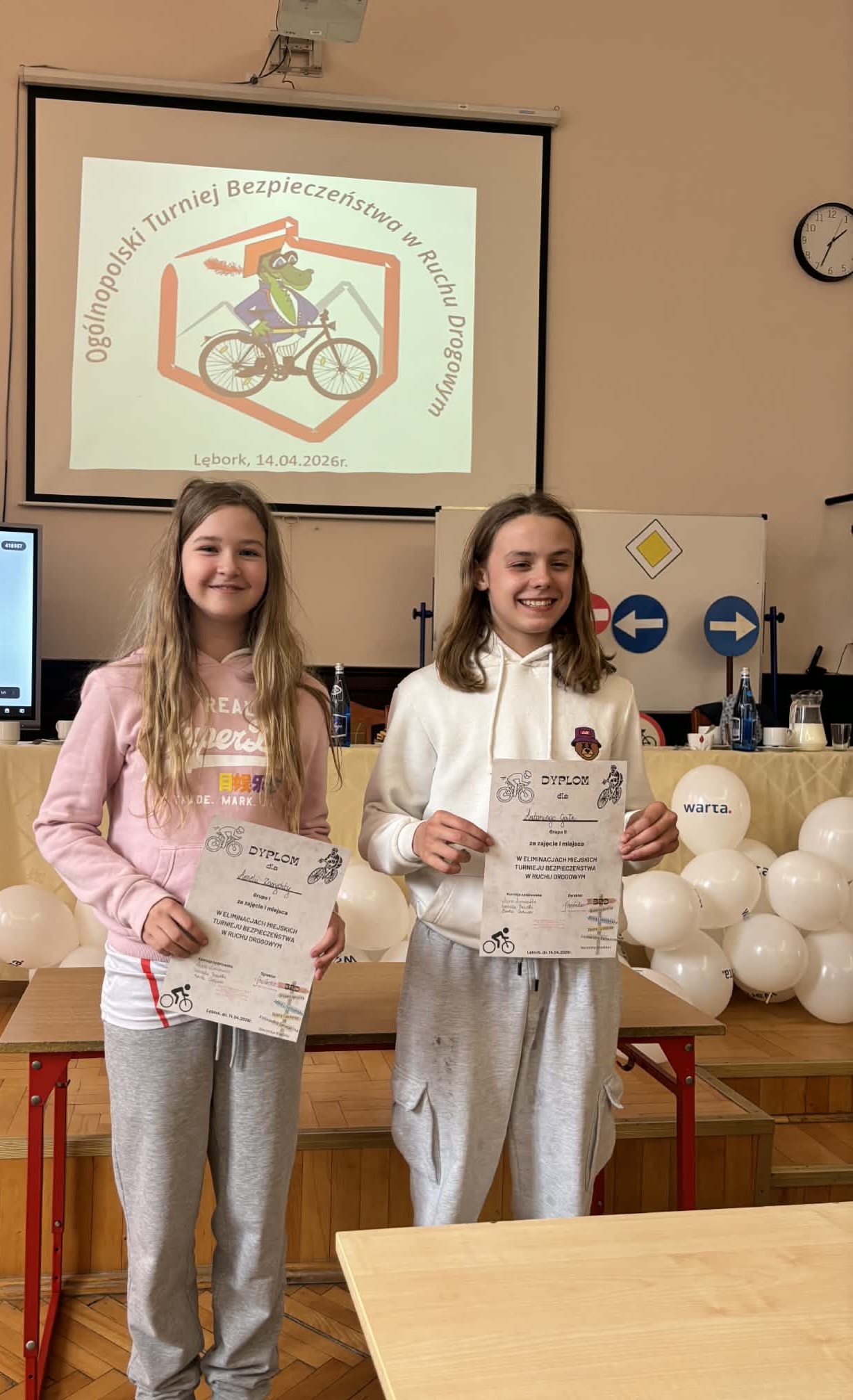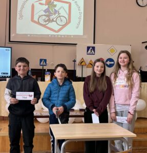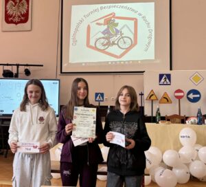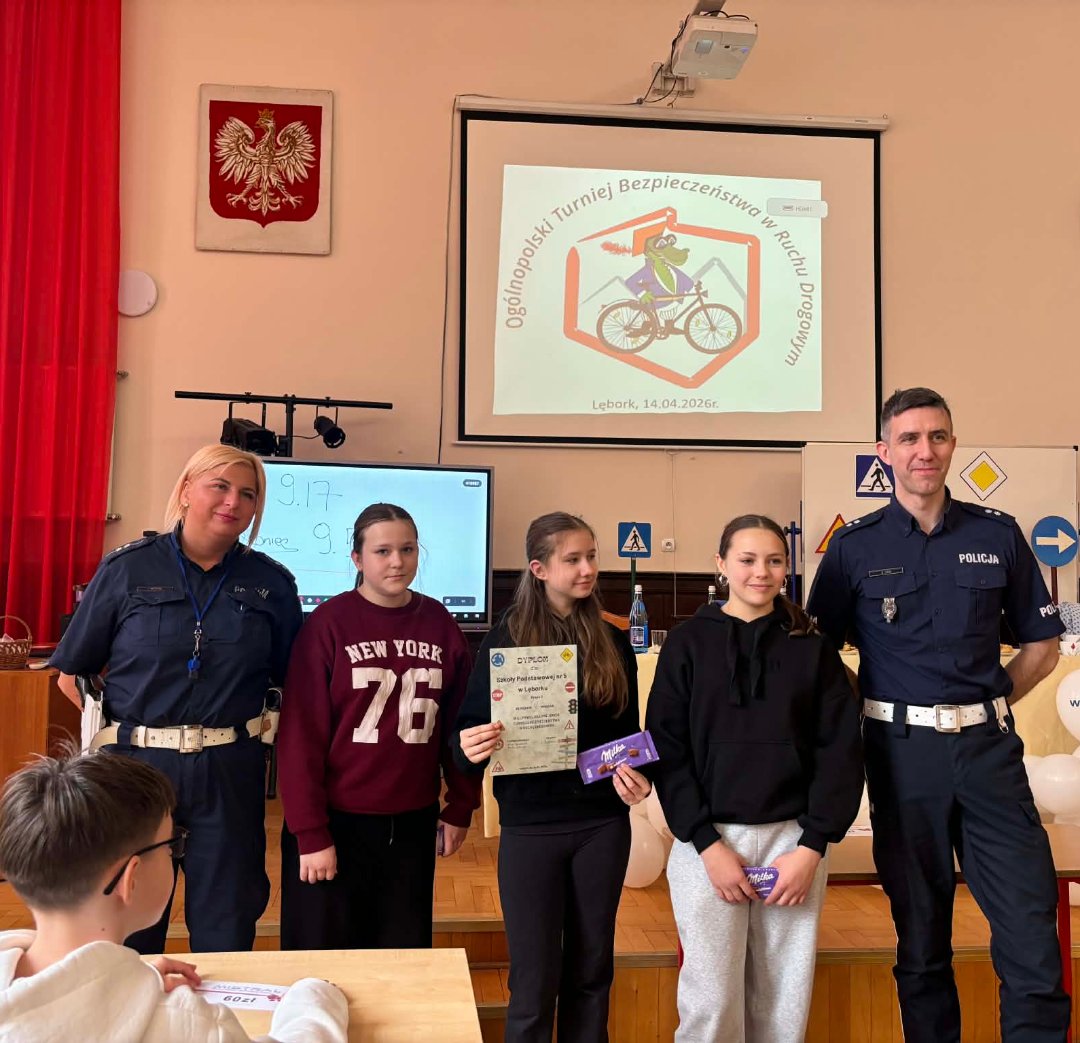 14 kwietnia w Szkole Podstawowej nr 3 w Lęborku odbyły się miejskie eliminacje w Ogólnopolskim Turnieju Bezpieczeństwa w Ruchu Drogowym. W Turnieju wzięły udział 4 drużyny z grupy I- uczniowie szkół podstawowych w wieku 10-12 lat (rocznik 2014 i młodsi) oraz 5 drużyn z grupy II (uczniowie szkół podstawowych). Turniej składał się z części teoretycznej (test skrzyżowań i test wiedzy) oraz praktycznej (jazda rowerem- tor sprawnościowy, pierwsza pomoc przedmedyczna). Reprezentacja naszej szkoły grupa I w składzie: Aniela Bizewska, Amelia Zarychta, Paweł Ran, Maksymilian Łuc uzyskali w ogólnej klasyfikacji Szkół Podstawowych – I miejsce. Reprezentacja naszej szkoły grupa II w składzie: Patrycja Szymikowska, Aleksandra Murawska, Antoni Gałka również zdobyli I miejsce. Obie drużyny wezmą udział w powiatowych eliminacjach Turnieju BRD w Zespole Szkół im. Jana Pawła II w Łebieniu 28 kwietnia 2026r. Najlepszym zawodnikiem reprezentującym grupy pierwsze została Amelia Zarychta- uczennica klasy 5a Szkoły Podstawowej nr 3 w Lęborku, natomiast w grupie drugiej-Antoni Gałka, uczeń klasy 7m Szkoły Podstawowej nr 3 w Lęborku. Komisja potwierdziła bardzo wysoki poziom Turnieju oraz bardzo dobre przygotowanie uczniów. Wszyscy uczestnicy Turnieju otrzymali nagrody i upominki.